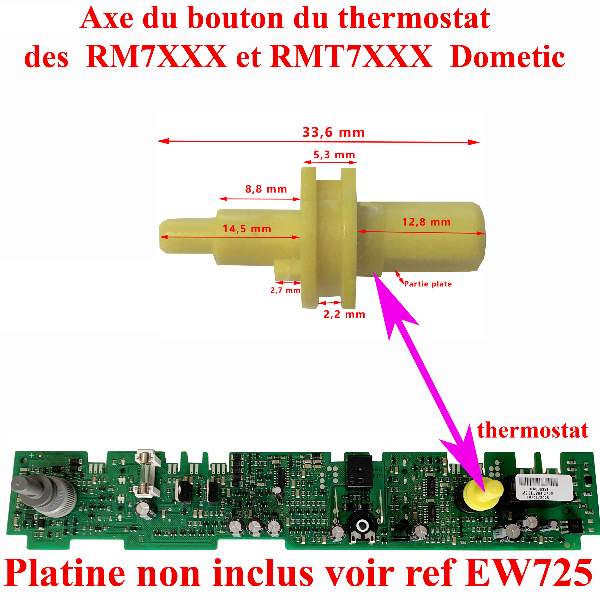 Pour vérifier si votre appareils comporte bien cette petite pièce qui se trouve derrière le bouton de température sur la platine de commande, merci de nous contacter et munissez vous pour vérifier la compatibilité de votre numéro de produit (PROD NO) de votre appareil Dometic (qui se trouve sur l’étiquette signalétique a l’intérieur de votre réfrigérateur).