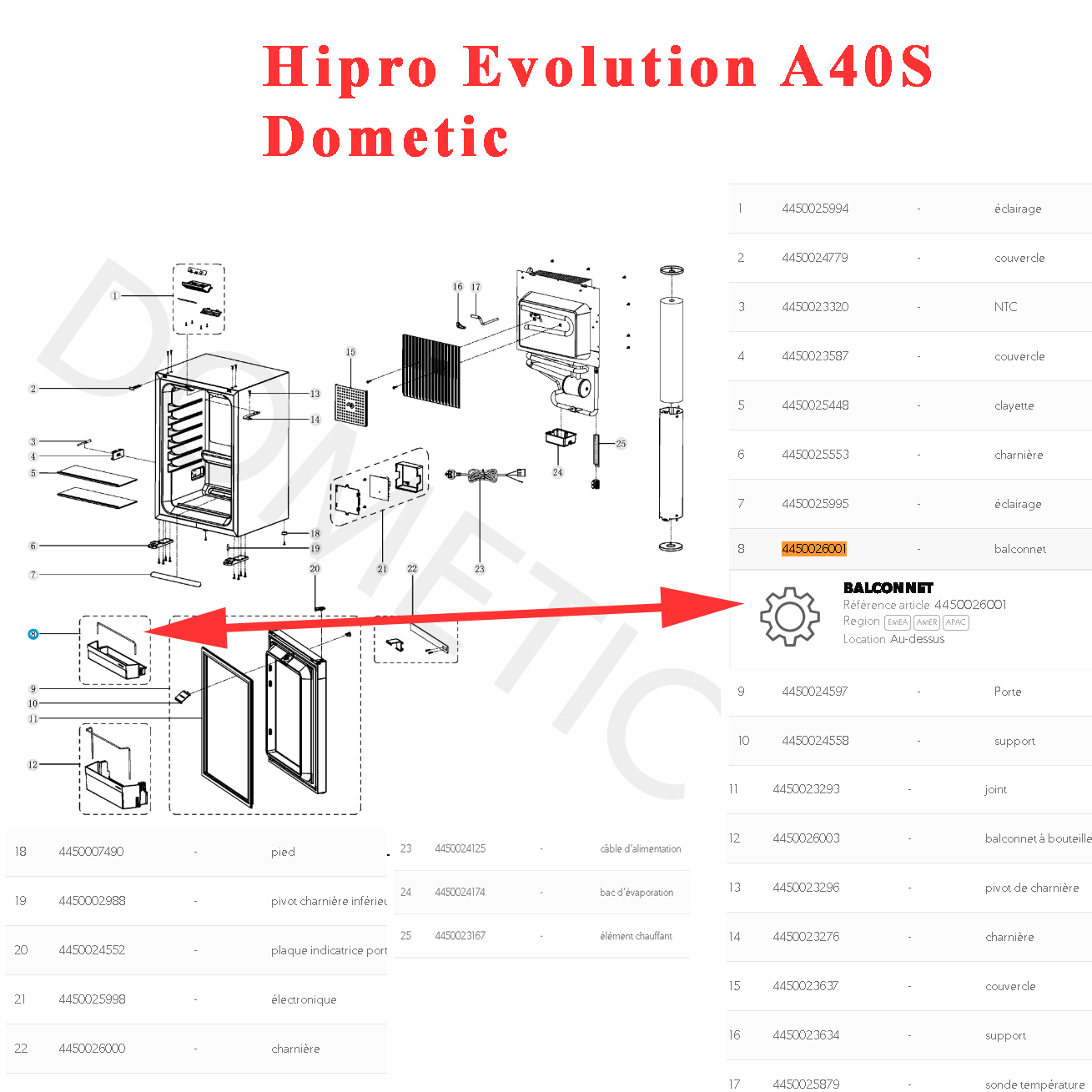 Balconnet HAUT Hipro evolution N40S2 par Dometic