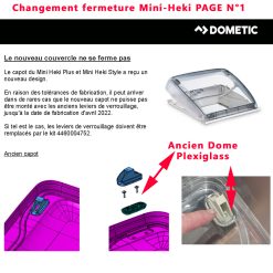 Pour vérifier si votre lanterneau Mini heki comporte bien ce bouton, merci de nous contacter et munissez vous pour vérifier la compatibilité de votre numéro de produit de votre appareil Dometic (qui se trouve sur l’étiquette signalétique de votre réfrigérateur).