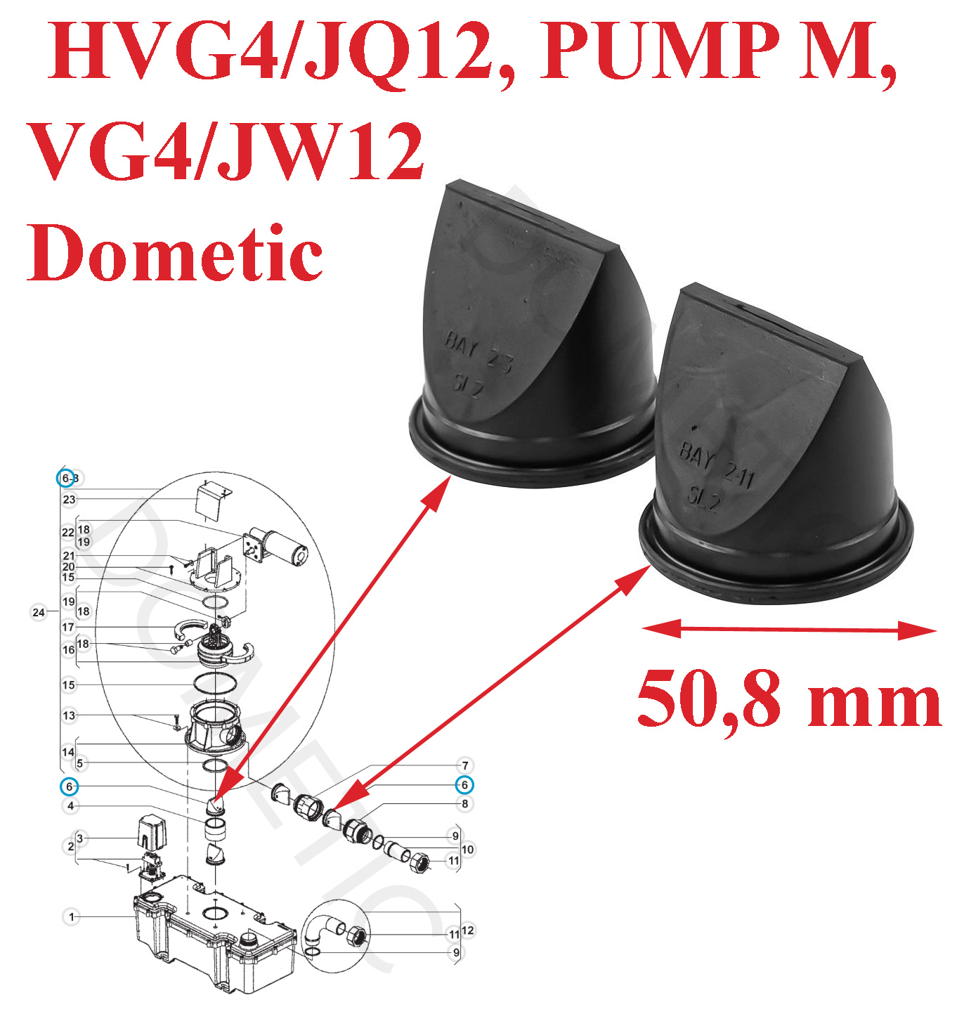 Dometic, 2 clapets anti-retour pour les toilettes : HVG4/JQ12, PUMP M, VG4/JW12
