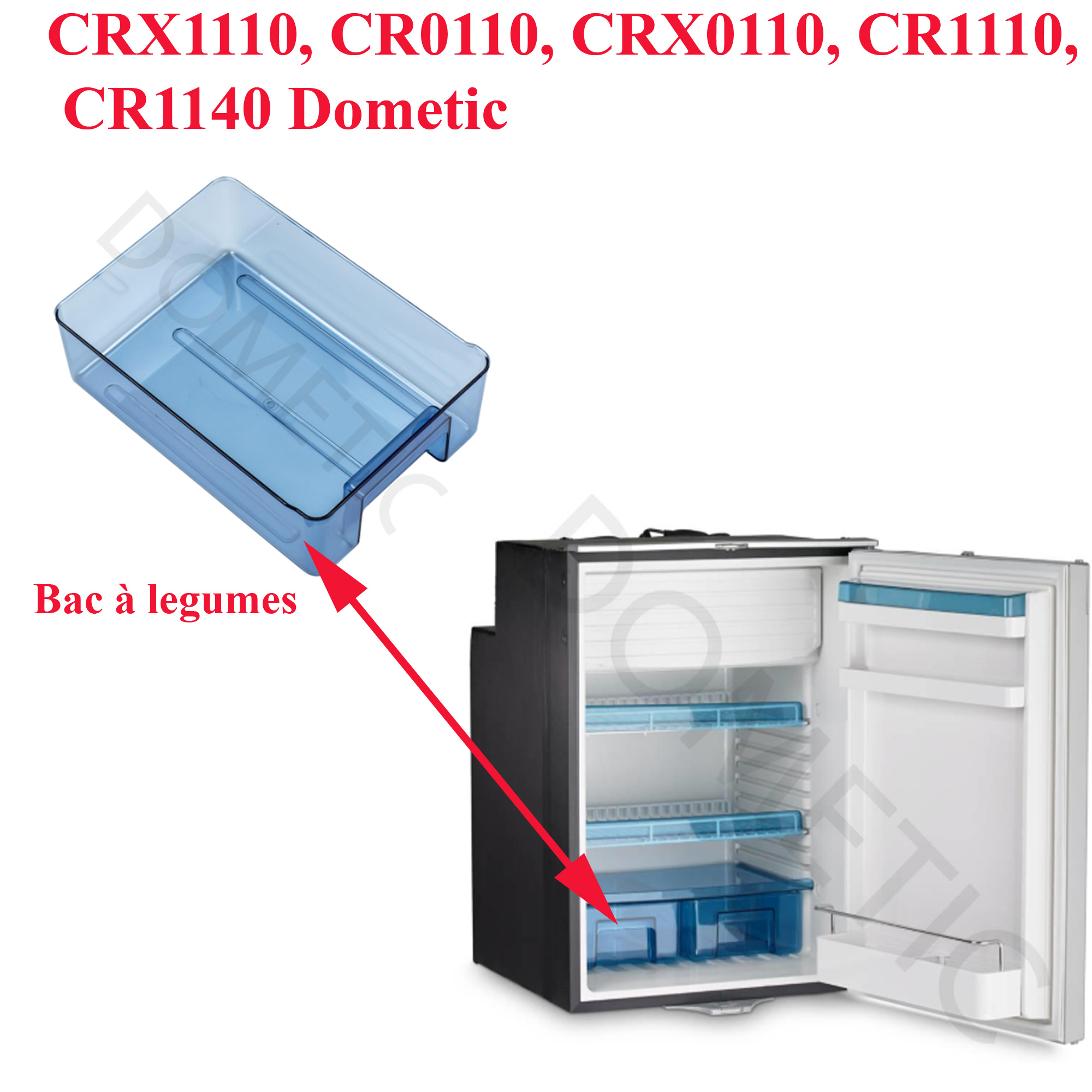 Pour vérifier si votre réfrigérateur Dometic comporte bien cet bac à légumes , merci de nous contacter 01.84.20.86.07 et munissez vous pour vérifier la compatibilité de votre numéro de produit de votre appareil Dometic (qui se trouve sur l’étiquette signalétique à l’intérieur du réfrigérateur).