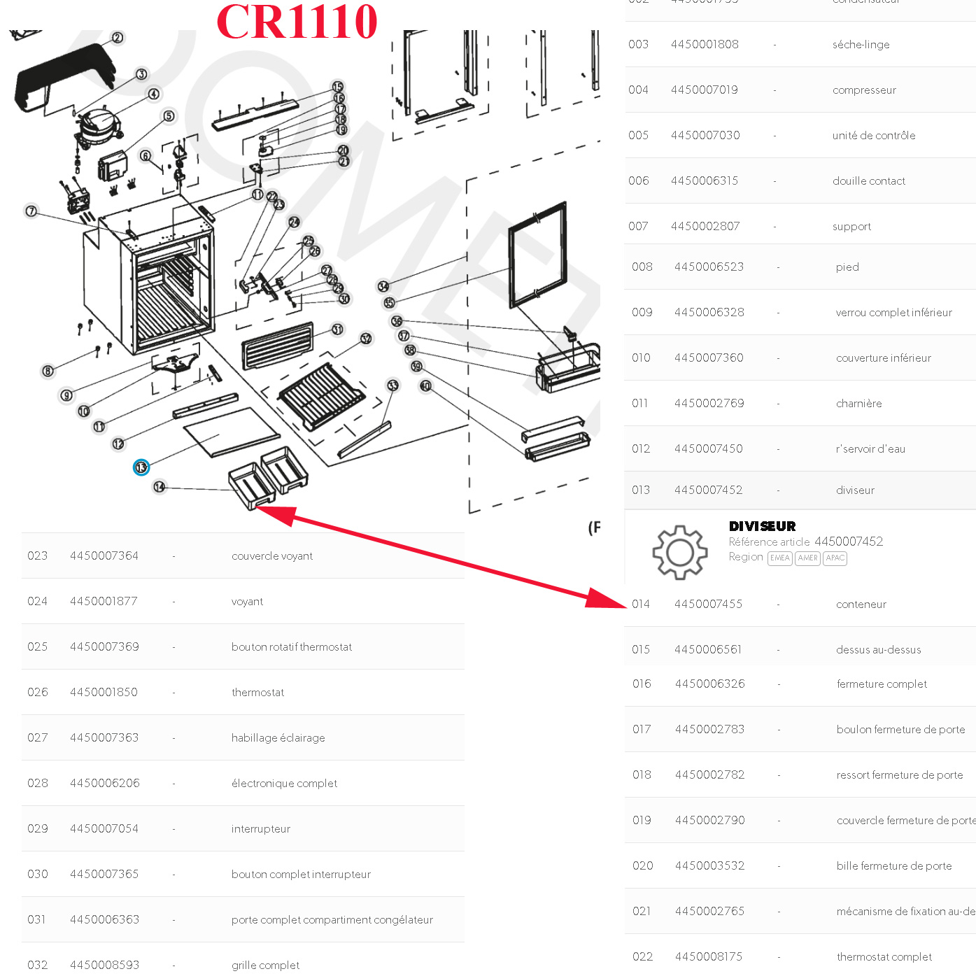 Piece d’origine constructeur, ref parts 4450007455
