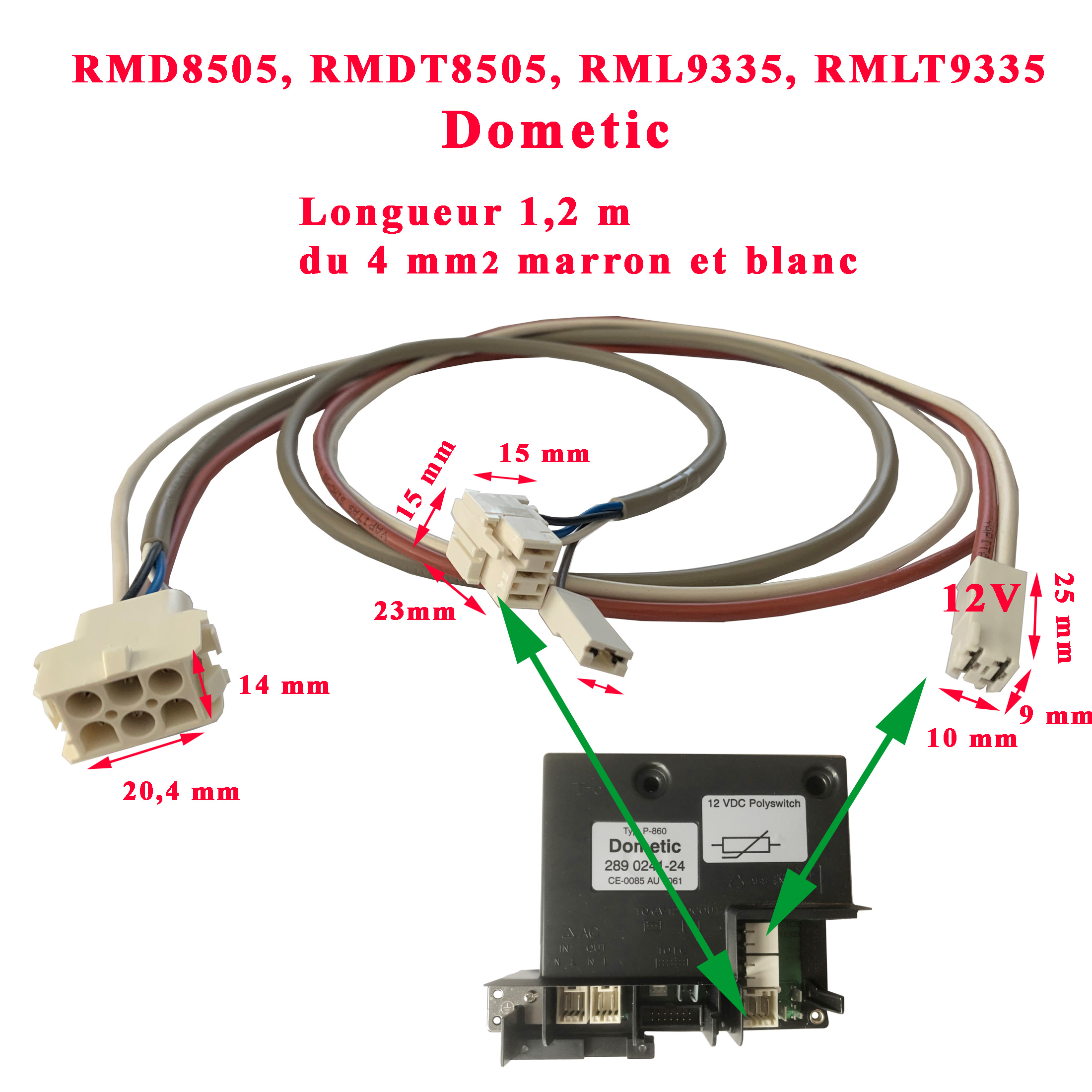 Dometic Câble, faisceau electrique 12V longueur 120 cm, de connection du P860 MRD8505, RMDT8505, RML9335, RMLT9335