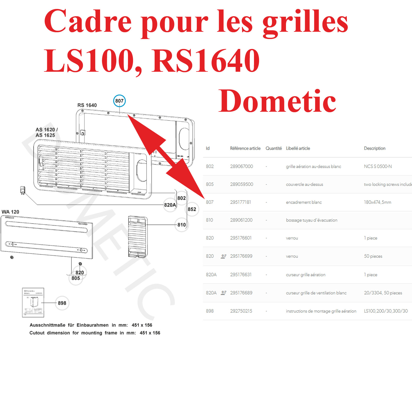 Pour vérifier si votre grille haute de ventilation Dometic comporte bien ce cadre, merci de nous contacter au 01.84.20.86.07