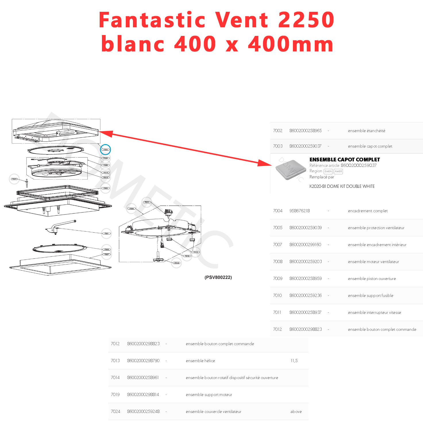 Capot complet Fantastic Vent 2250 blanc 400 x 400mm par Dometic