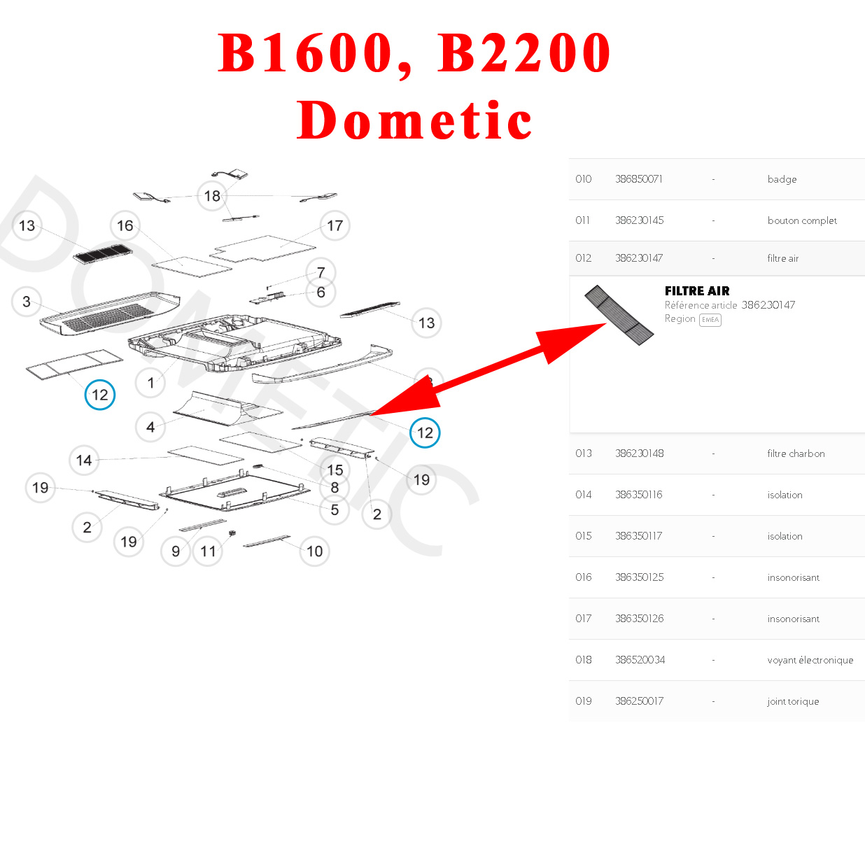 Pour vérifier si votre climatisation B2200 ou B1600 Dometic comporte bien ce fitre à aire, merci de nous contacter tel 01.84.20.86.07 et munissez vous pour vérifier la compatibilité de votre numéro de produit Dometic (qui se trouve sur l’étiquette signalétique parfois sous le capot).