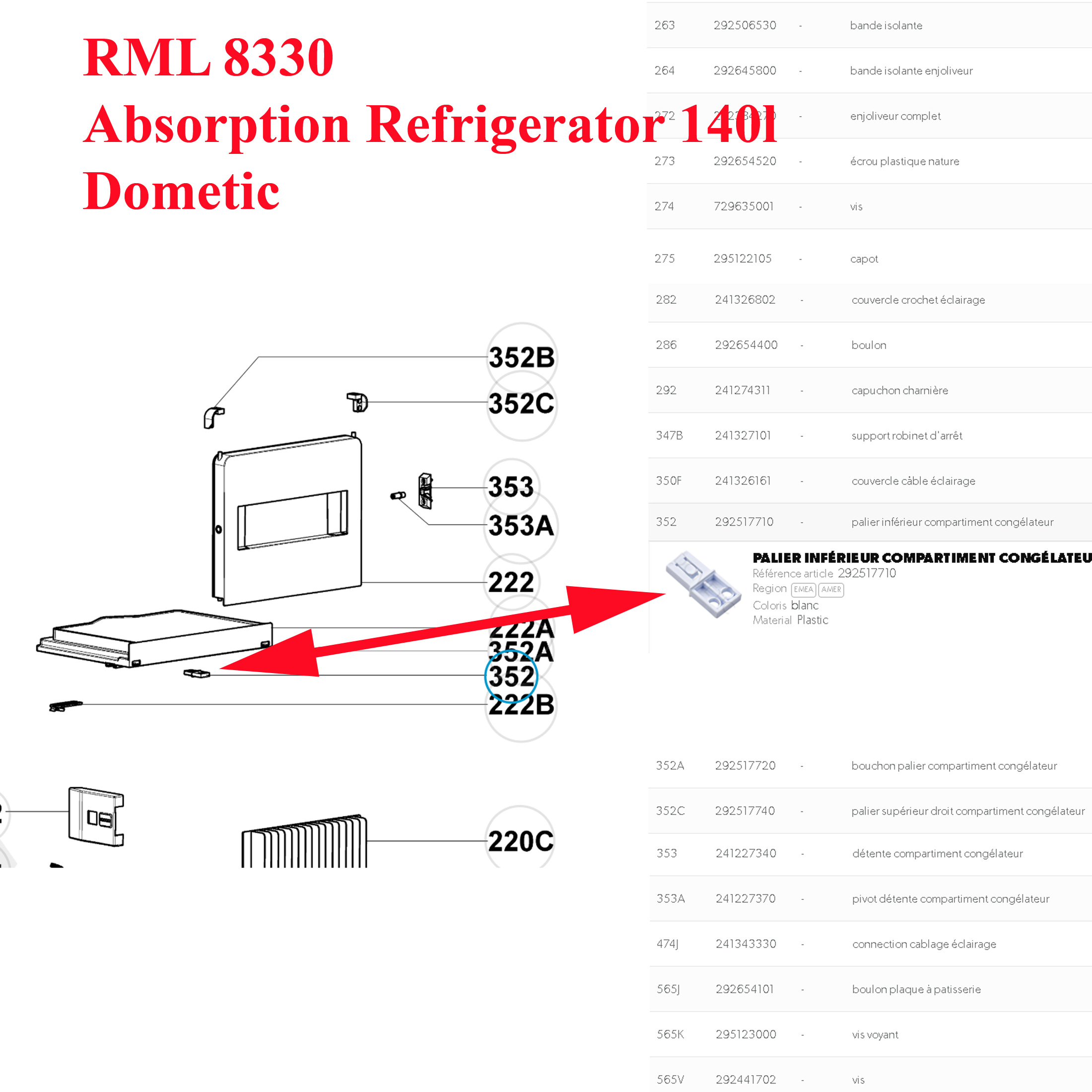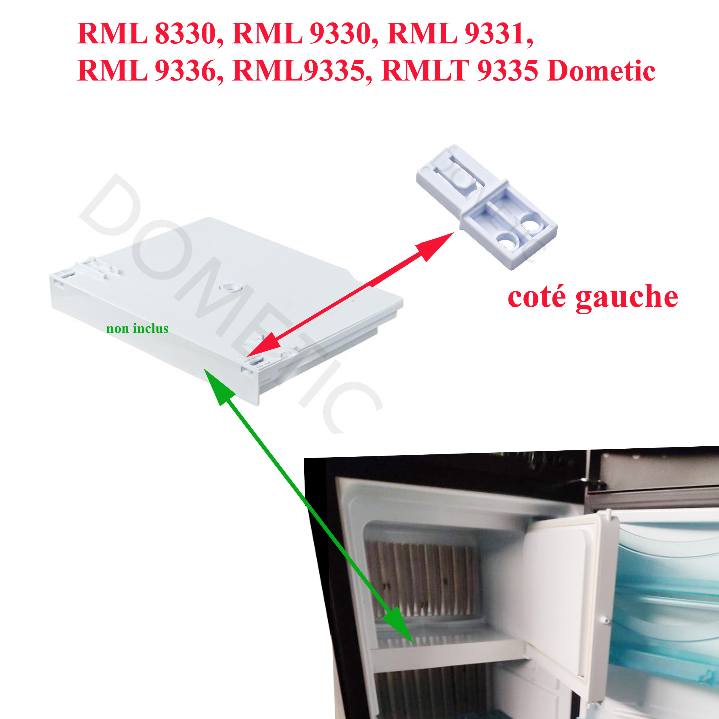 Pour vérifier, si le panneau inférieur du freezer comporte bien ce clips, merci de nous contacter au 01.84.20.86.07 et munissez vous pour vérifier la compatibilité de votre numéro de produit de votre appareil Dometic (qui se trouve sur l’étiquette signalétique à l’intérieur du réfrigérateur, derrière la bac à légumes) ou contrôler sur la liste ci-dessous si votre numéro de série figure bien sur cette liste.