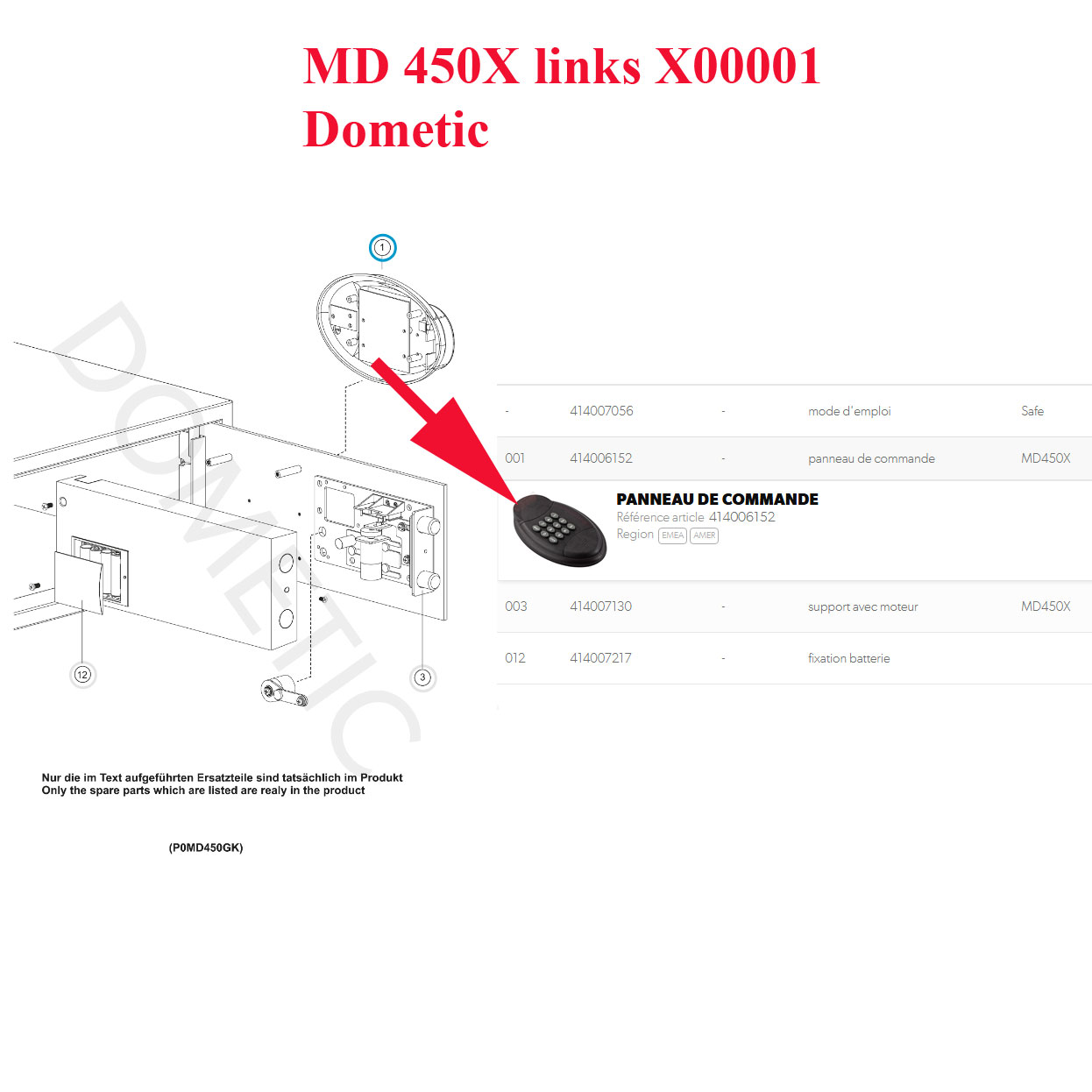 Dometic, coffre fort, touches et platine des modèles: MD450X MD390