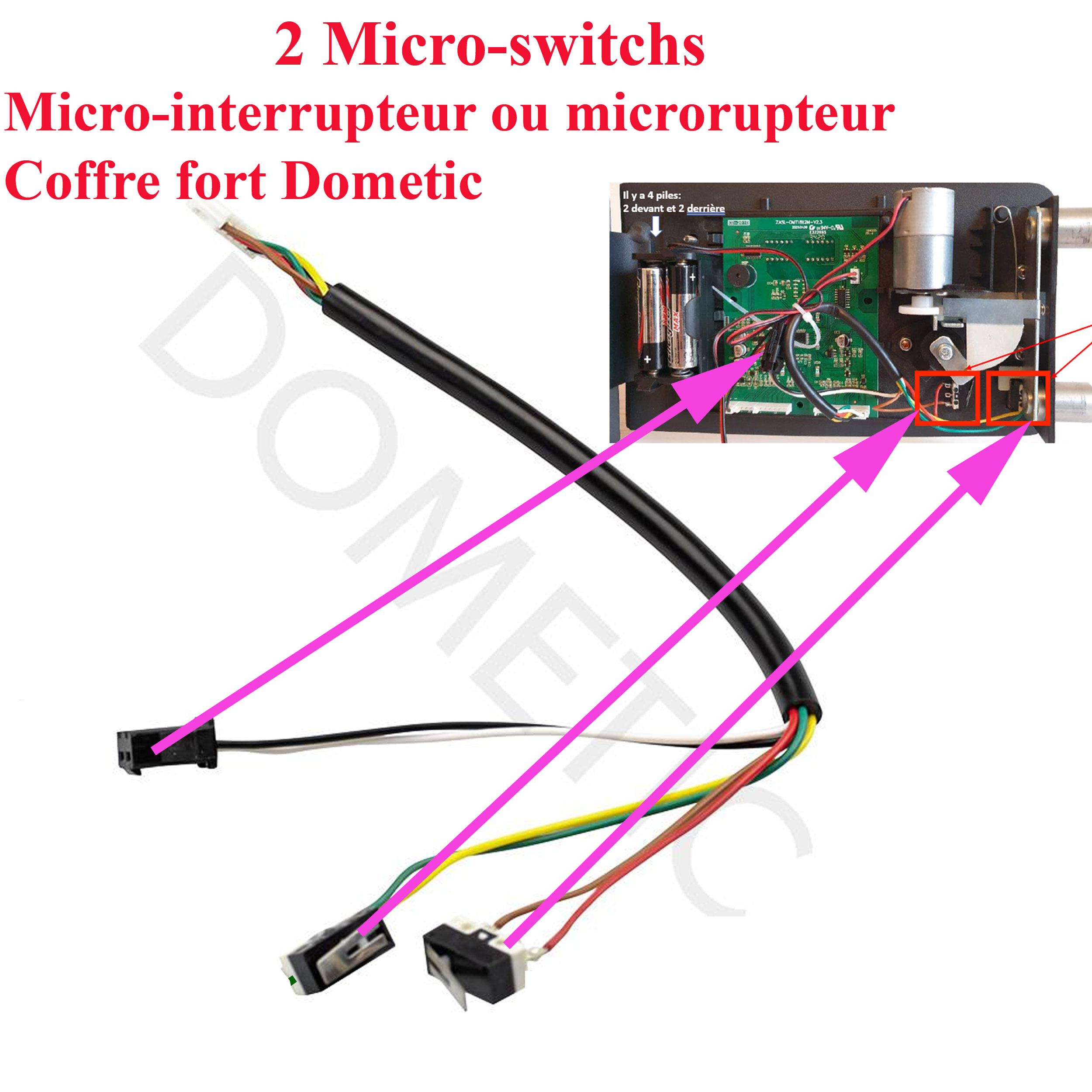 Dometic, coffre fort, deux microrupteur du mécanisme de verrouillage pour les modèles : M280, M360, MD28, MD38, MD36, MD40, MD45, MDB3, MDD4, MDL193, MDL408, MDM281S, MDT400, MDT403