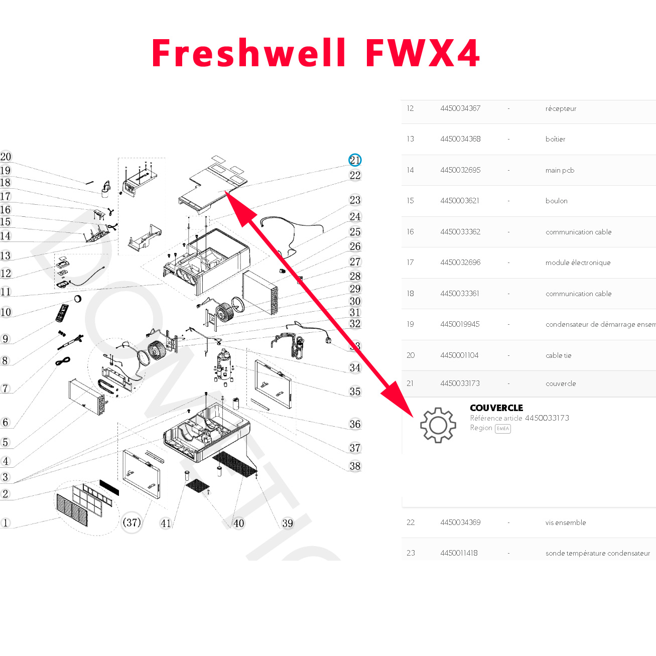 Pour vérifier si votre climatisation Freshwell FWX4 (qui remplace la Freshwell 3000) comporte bien ce couvercle , munissez vous pour vérifier la compatibilité de votre numéro de produit de votre appareil Dometic (qui se trouve sur l’étiquette signalétique) ou contactez nous au 01 84 20 86 07.
