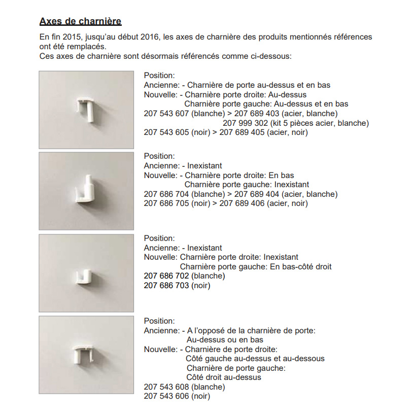 pièce origine constructeur, ref parts 207543605 remplacé par 207689405