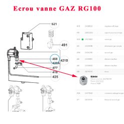 Ecrou Dometic type M14x1,5 de la vanne Gaz GV100