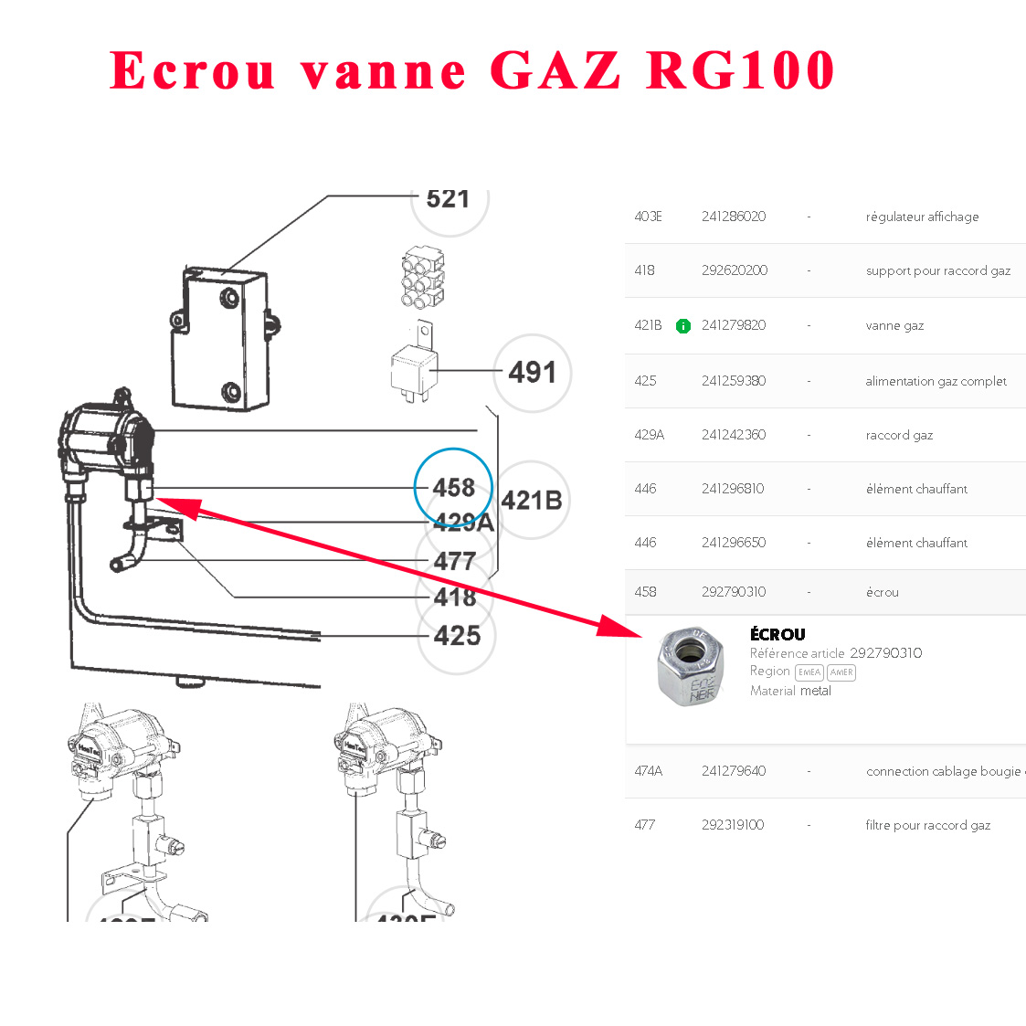 pièce origine constructeur, ref parts 292790310
