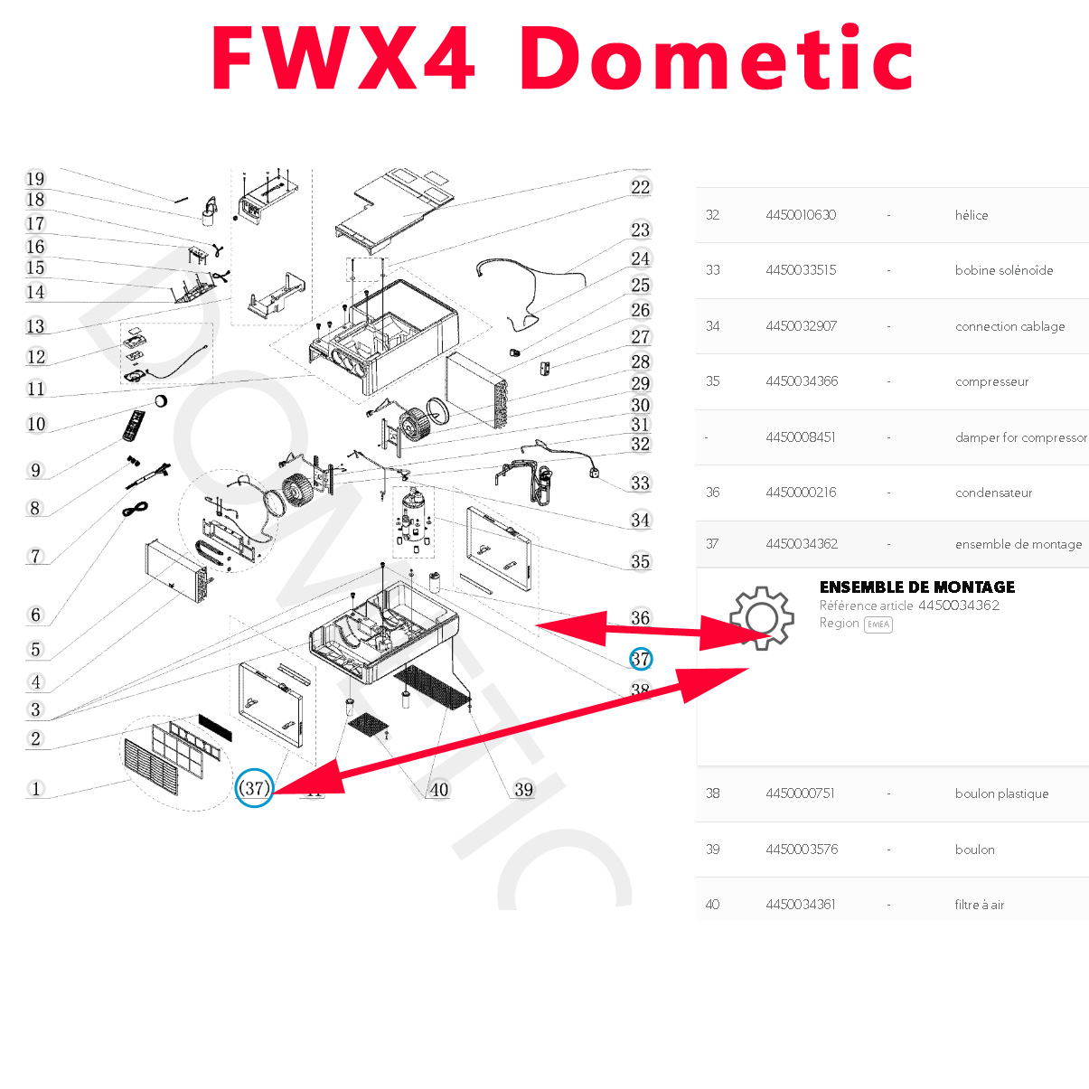 Pour vérifier si votre climatisation Freshwell FWX4 comporte bien ce kit complet de fixation, munissez vous pour vérifier la compatibilité de votre numéro de produit de votre appareil Dometic (qui se trouve sur l’étiquette signalétique) ou contactez nous au 01 84 20 86 07.