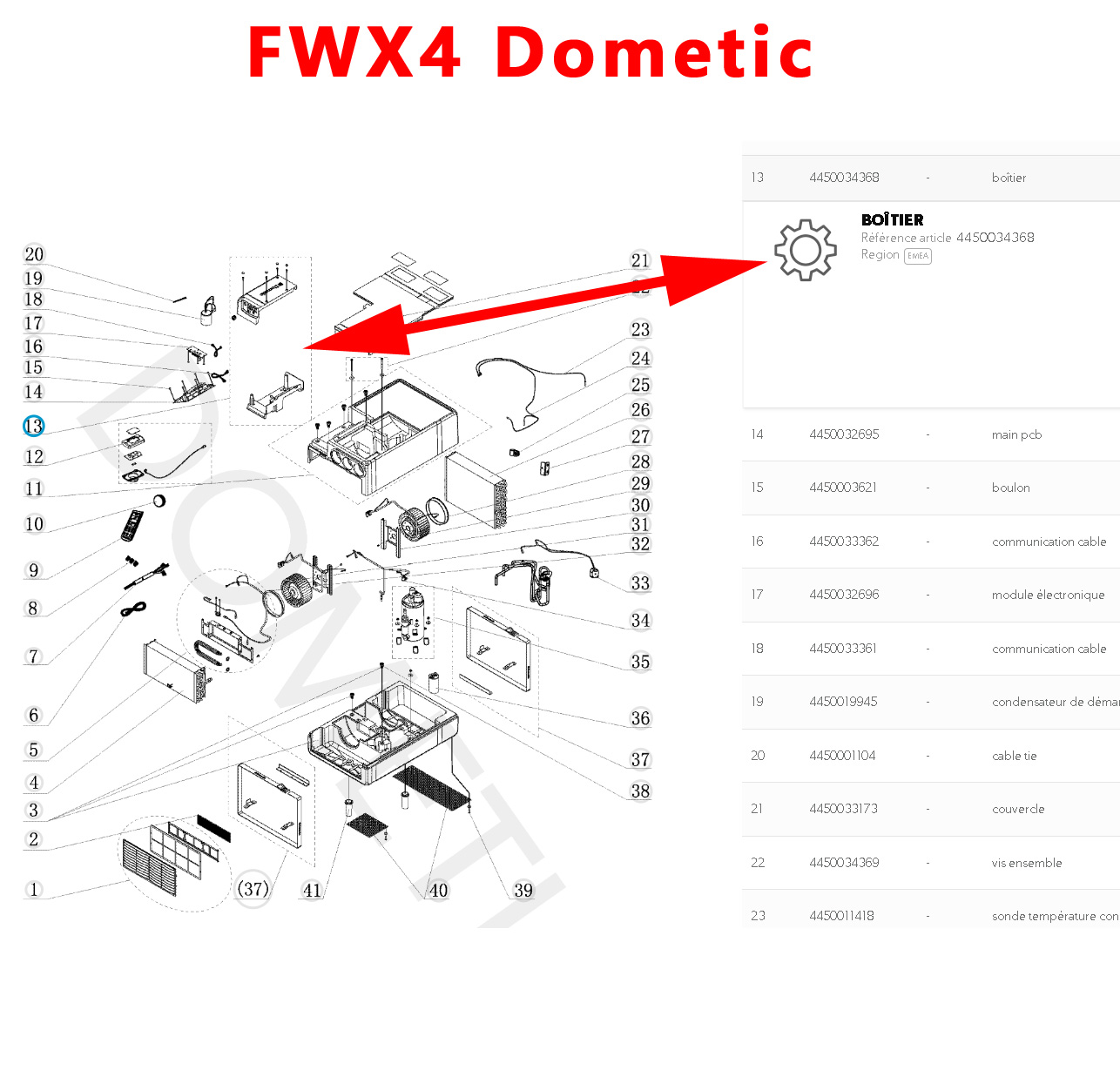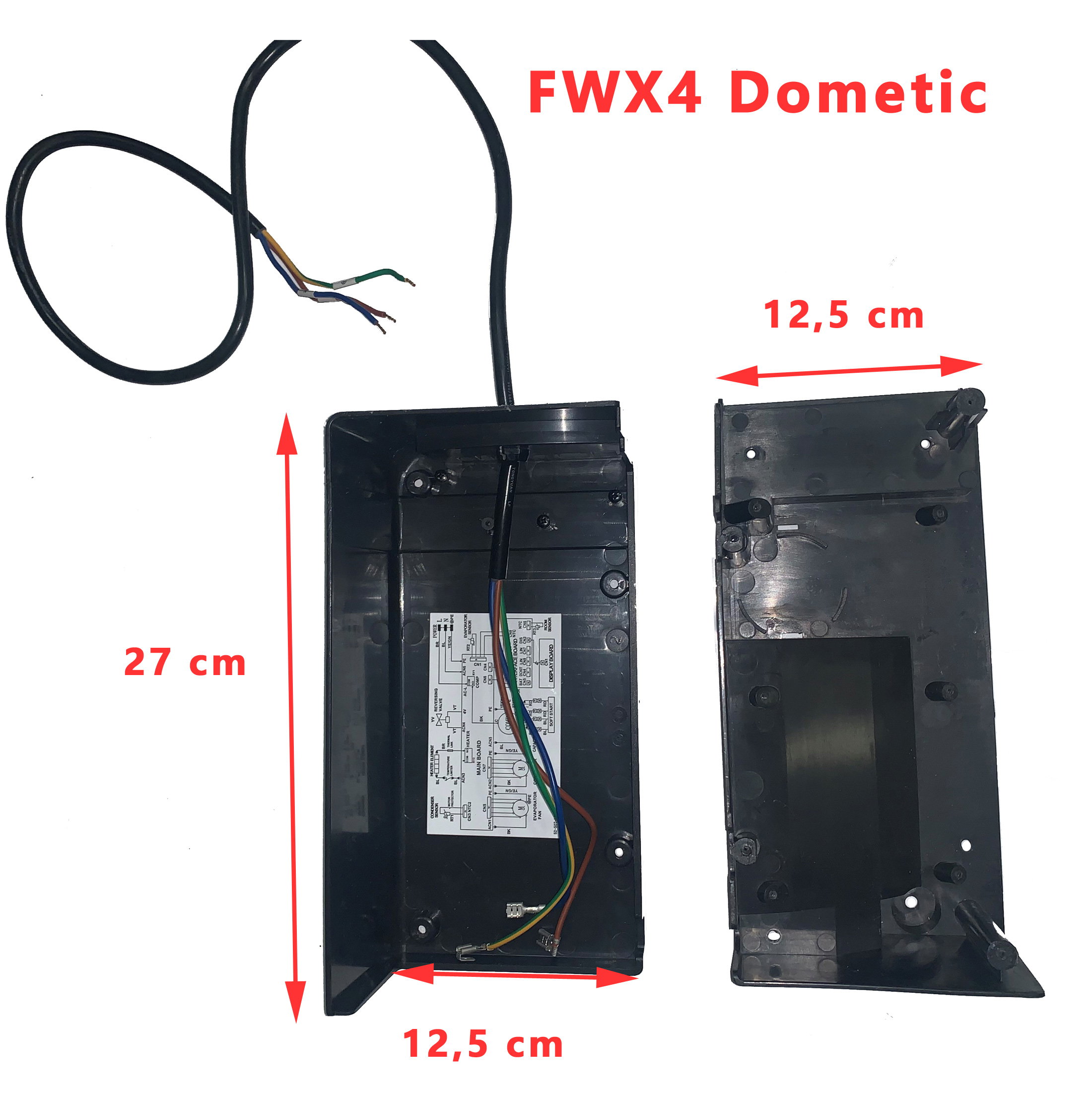 Pour vérifier si votre climatisation , FWX4, comporte bien cette boite dans laquelle se trouve le PCB (non inclus), munissez vous pour vérifier la compatibilité de votre numéro de produit de votre appareil Dometic (qui se trouve sur l’étiquette signalétique) ou contactez nous au 01 84 20 86 07.