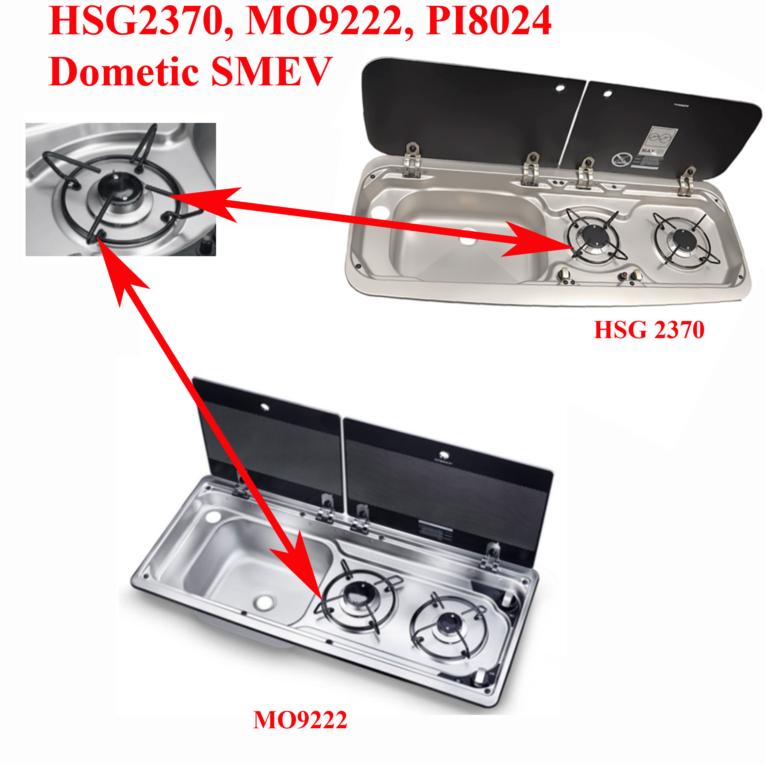 Dometic, grille au dessus du bruleur pour les modèles HSG2370, MO9222, PI8024