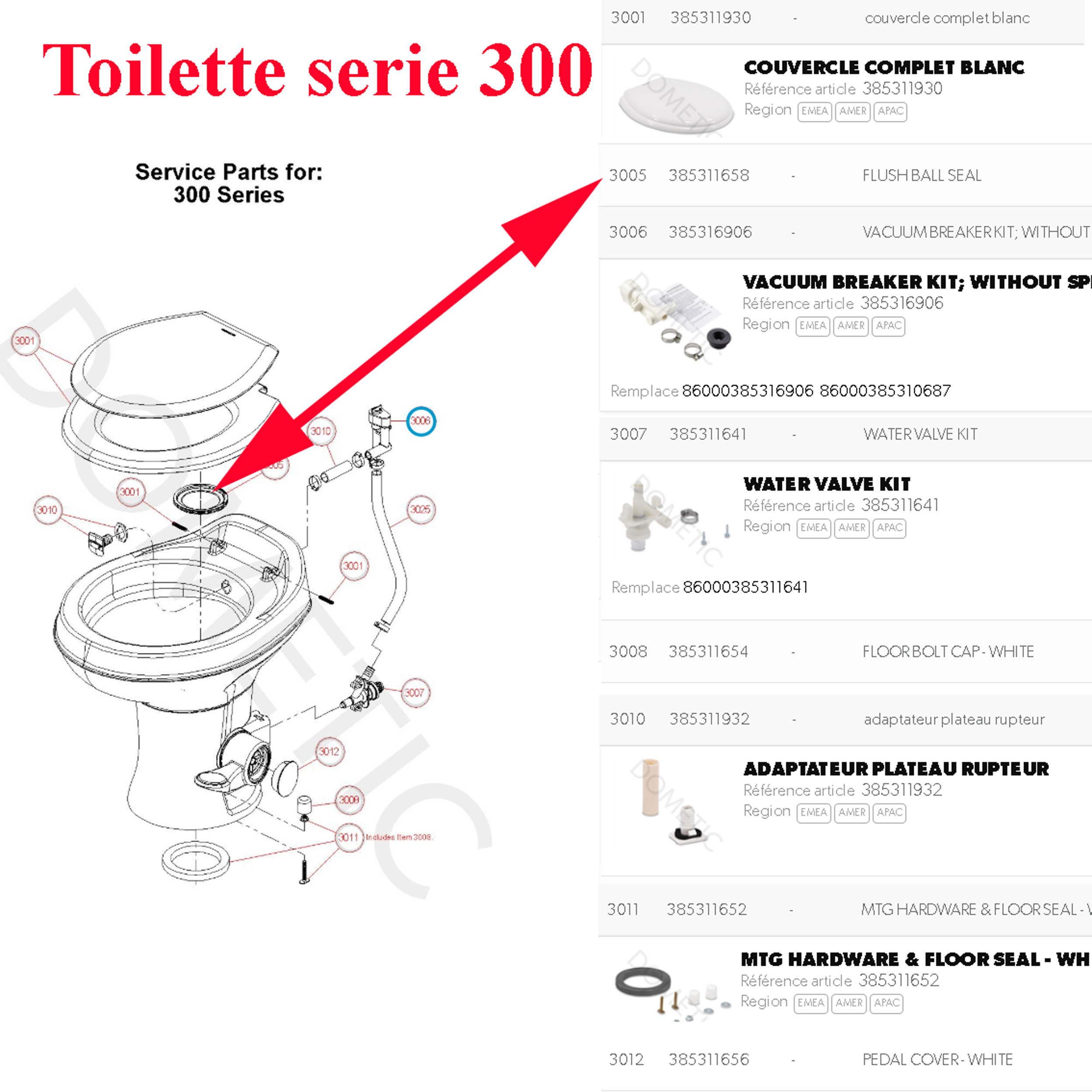Pour vérifier si votre toilette comporte ce joint, merci de nous contacter au 01.84.20.86.07 et munissez vous pour vérifier la compatibilité de votre numéro de produit de votre toilette Dometic (qui se trouve sur l’étiquette signalétique).