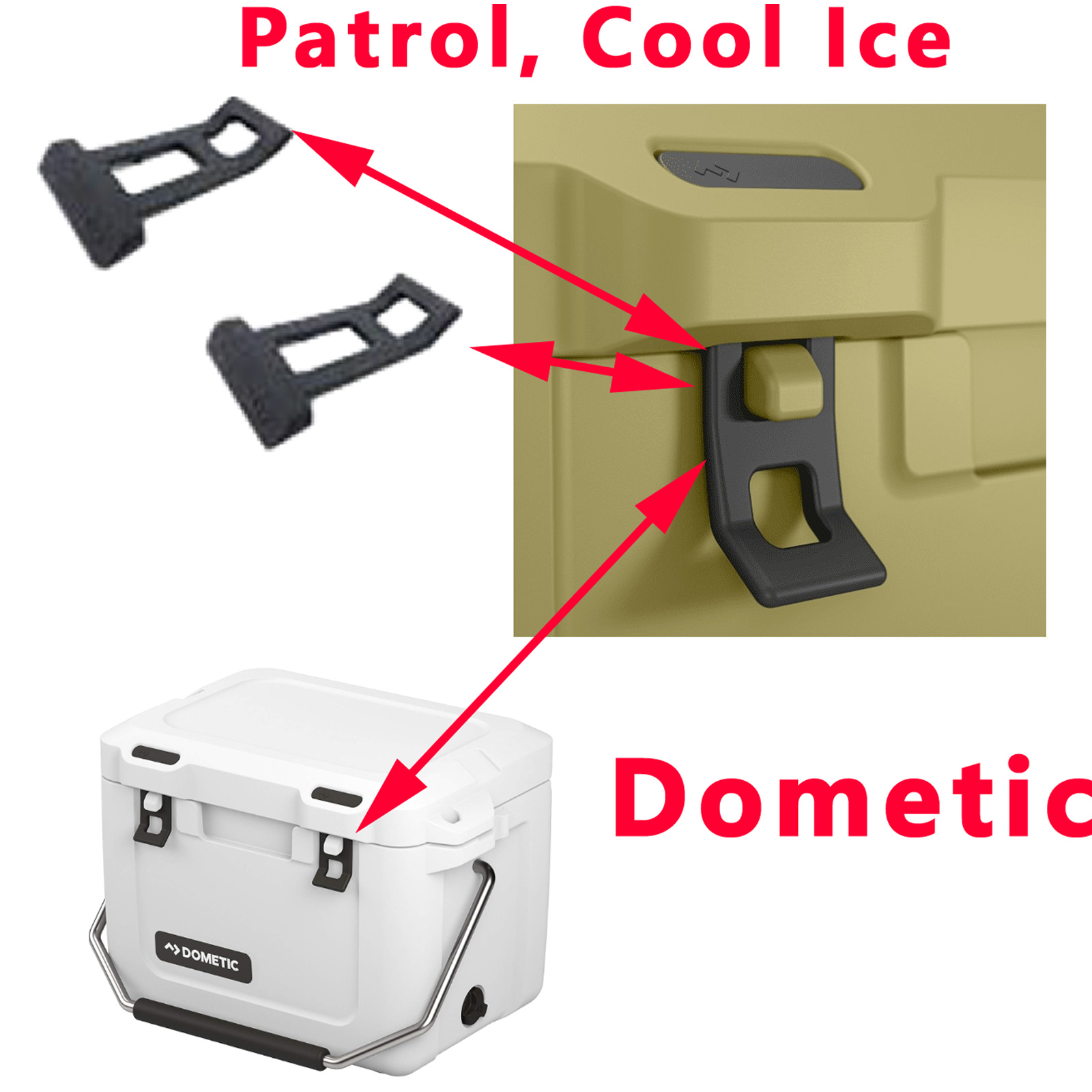 Ensemble pour deux verrouillages du couvercle en caoutchouc des glacieres Patrol par Dometic