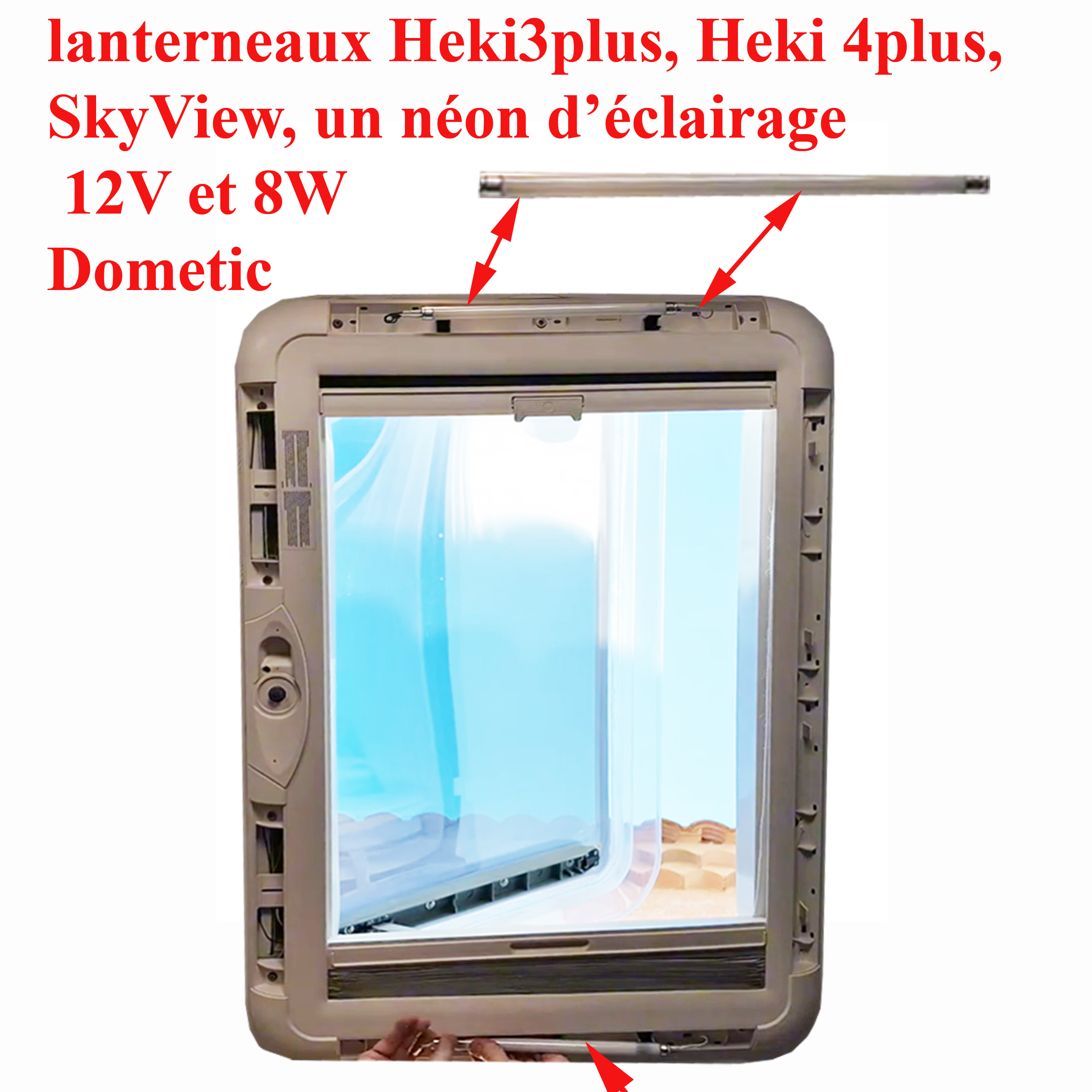 Dometic, lanterneaux Heki3plus, Heki 4plus, SkyView, un néon d’éclairage 12V et 8W