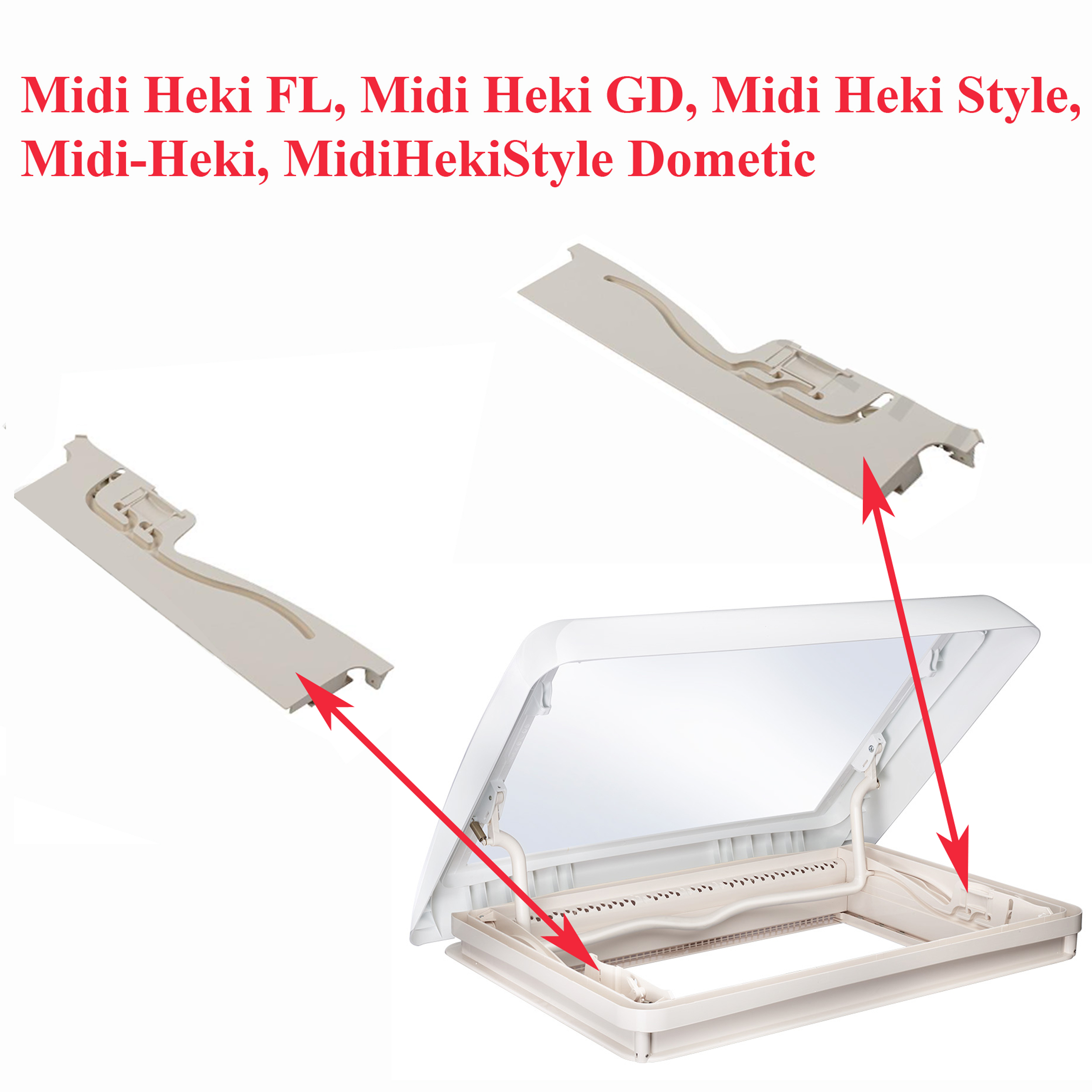 Dometic, coté du cadre extérieur des lanterneaux : Midi Heki FL, Midi Heki GD , Midi Heki Style, Midi-Heki, MidiHekiStyle