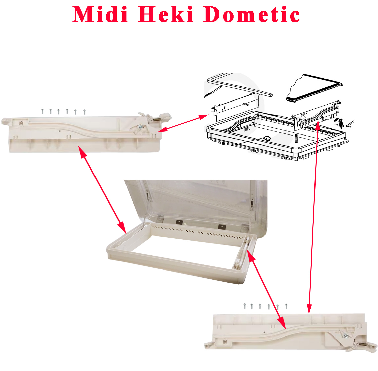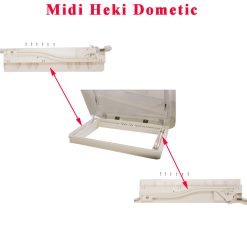 Pour vérifier si votre lanterneau Midi-heki comporte bien cette piece de maintient des compas, merci de nous contacter tel 01.84.20.86.07 et munissez vous pour vérifier la compatibilité de votre numéro de produit de votre appareil Dometic (qui se trouve sur l’étiquette signalétique).
