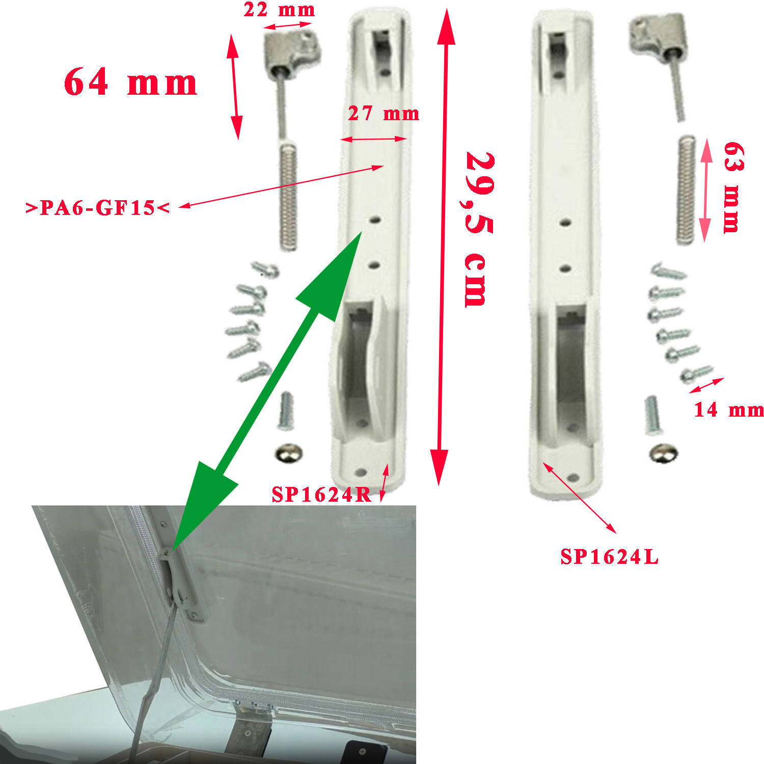 pièce origine constructeur, ref parts 4460000232, inscription gravé sur les pieces : ref SP1624R, SP1624L, >PA6-GF15<