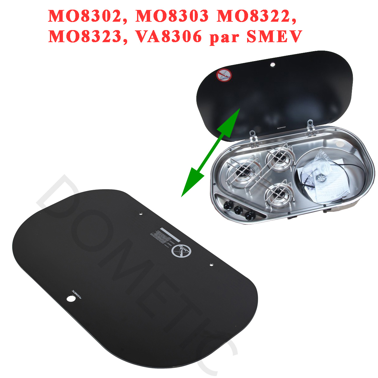 SMEV, Dometic, plaque en verre pour les gazinières MO8302, MO8303 MO8322, MO8323, VA8306