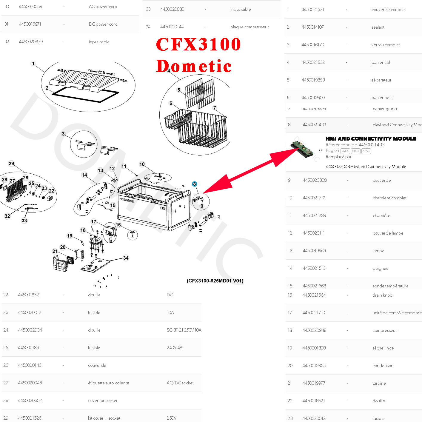 Dometic, platine de commande HMI and Connectivity pour réfrigérateur CFX395DZ, CFX375DZ, CFX355, CFX345, CFX335, CFX325, CFX3100