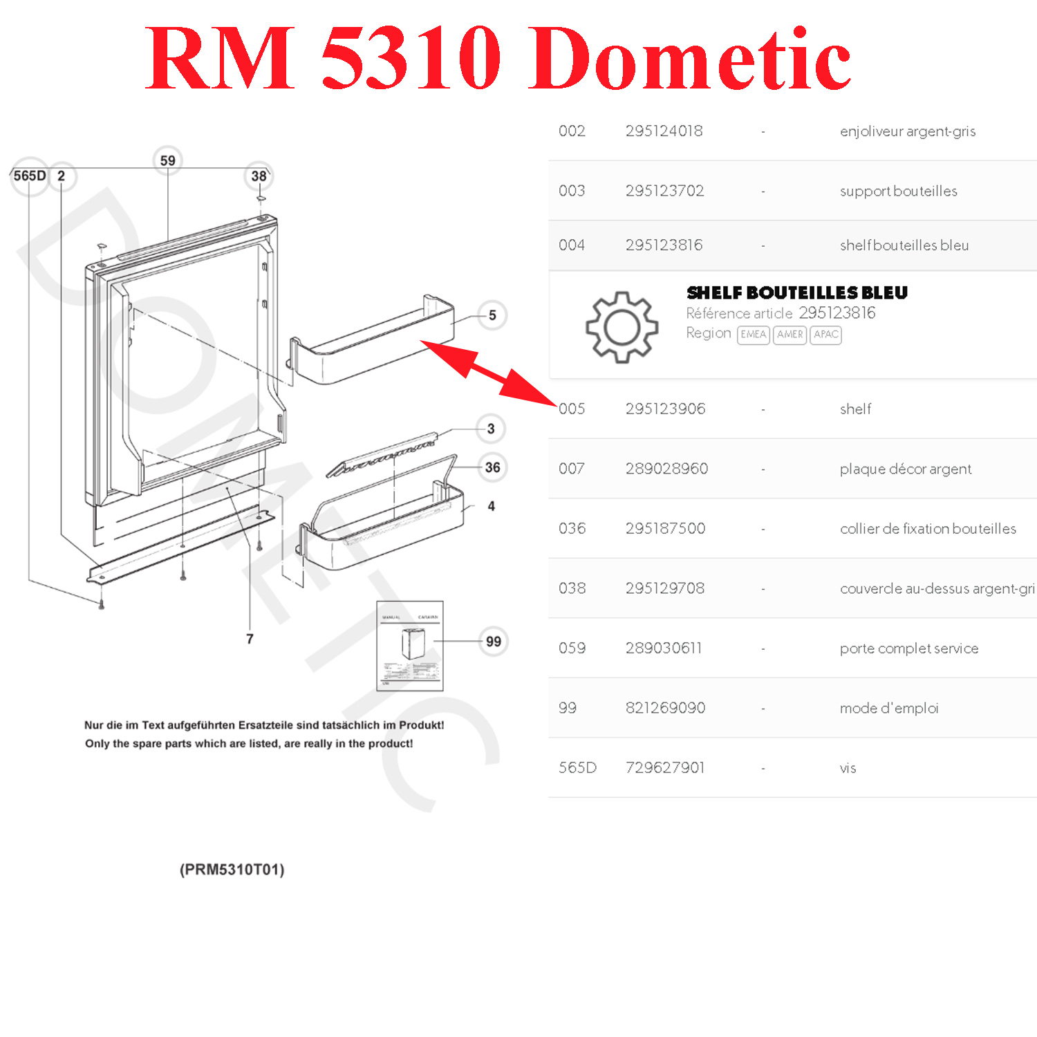 Dometic porte balconnet du haut des réfrigérateurs : RM5310, RM5330, RM5380, RM5385, RMV5305