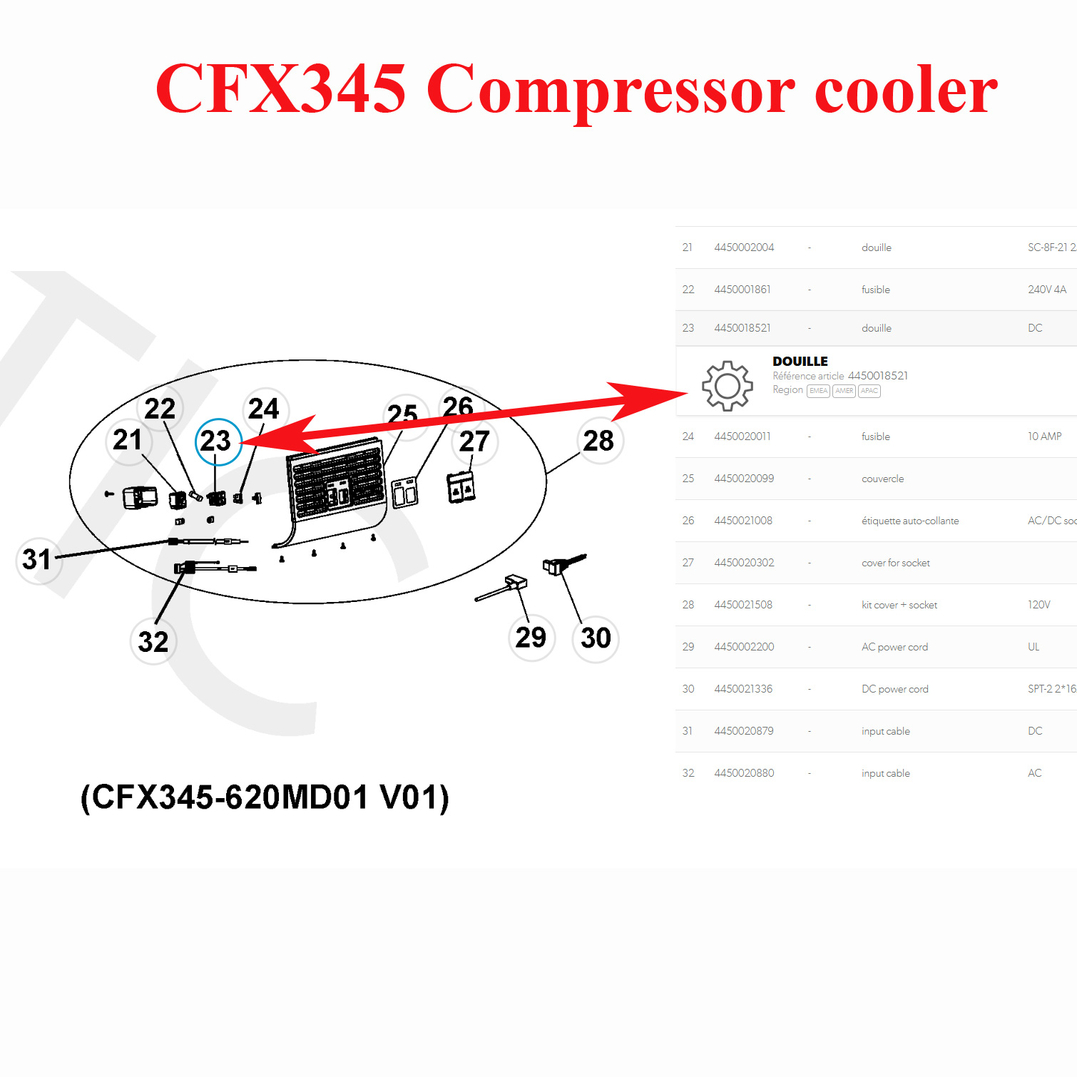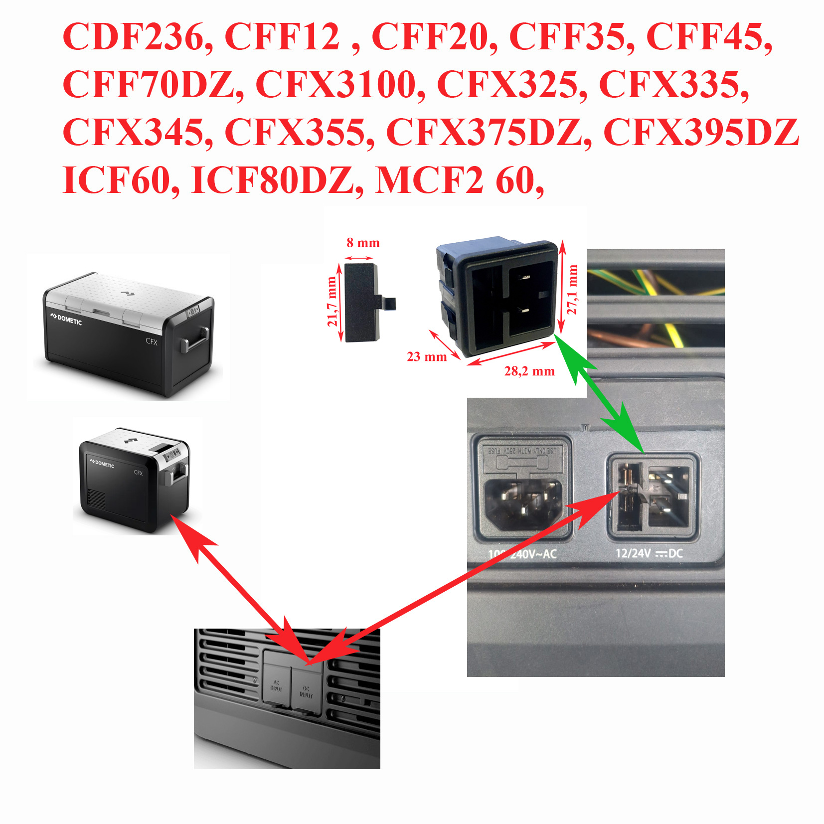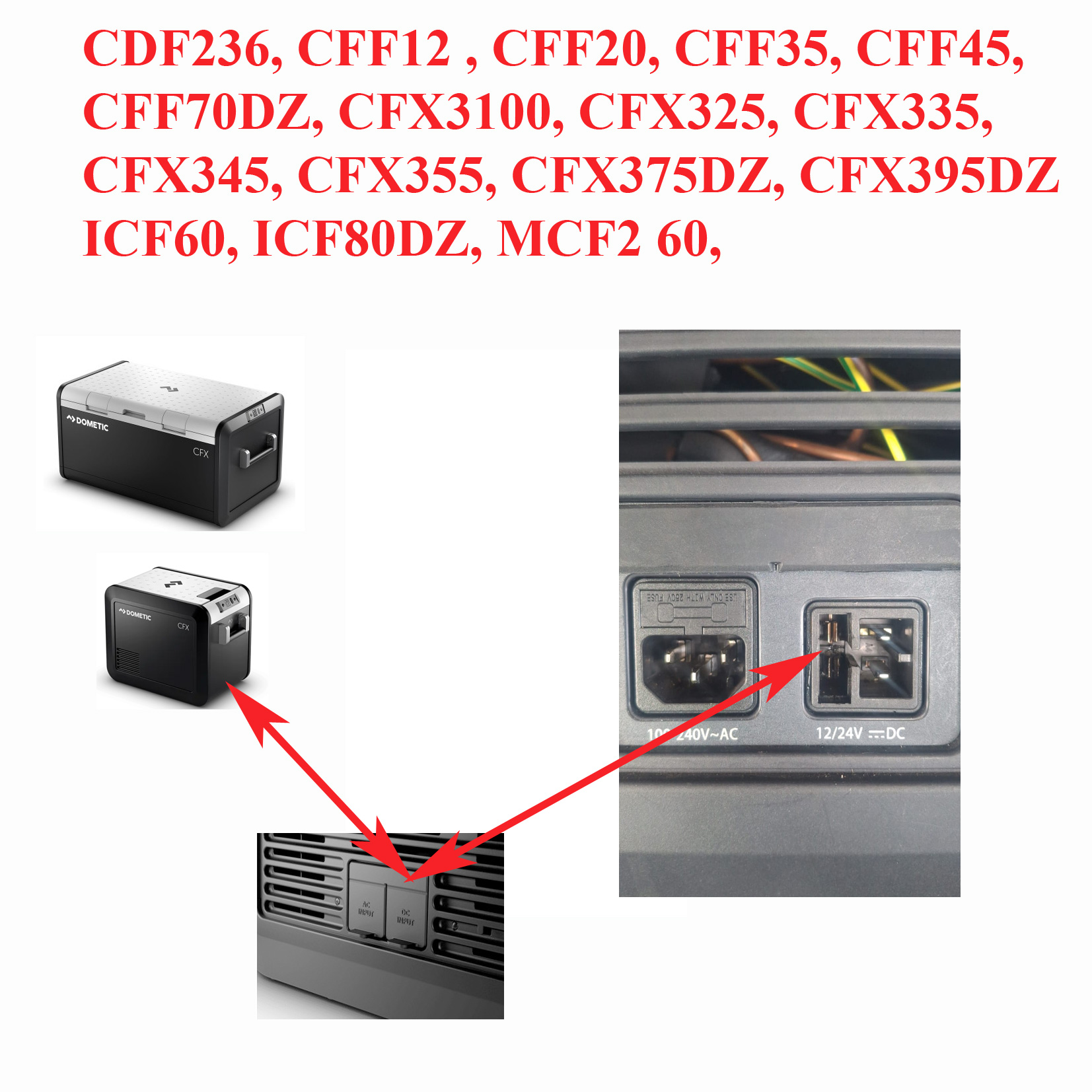 Dometic, prise de branchement ou douille DC du câble allume-cigare pour les glacières CDF236, CFF12 , CFF20, CFF35, CFF45, CFF70DZ, CFX3100, CFX325, CFX335, CFX345, CFX355, CFX375DZ, CFX395DZ, ICF60, ICF80DZ, MCF2 60.