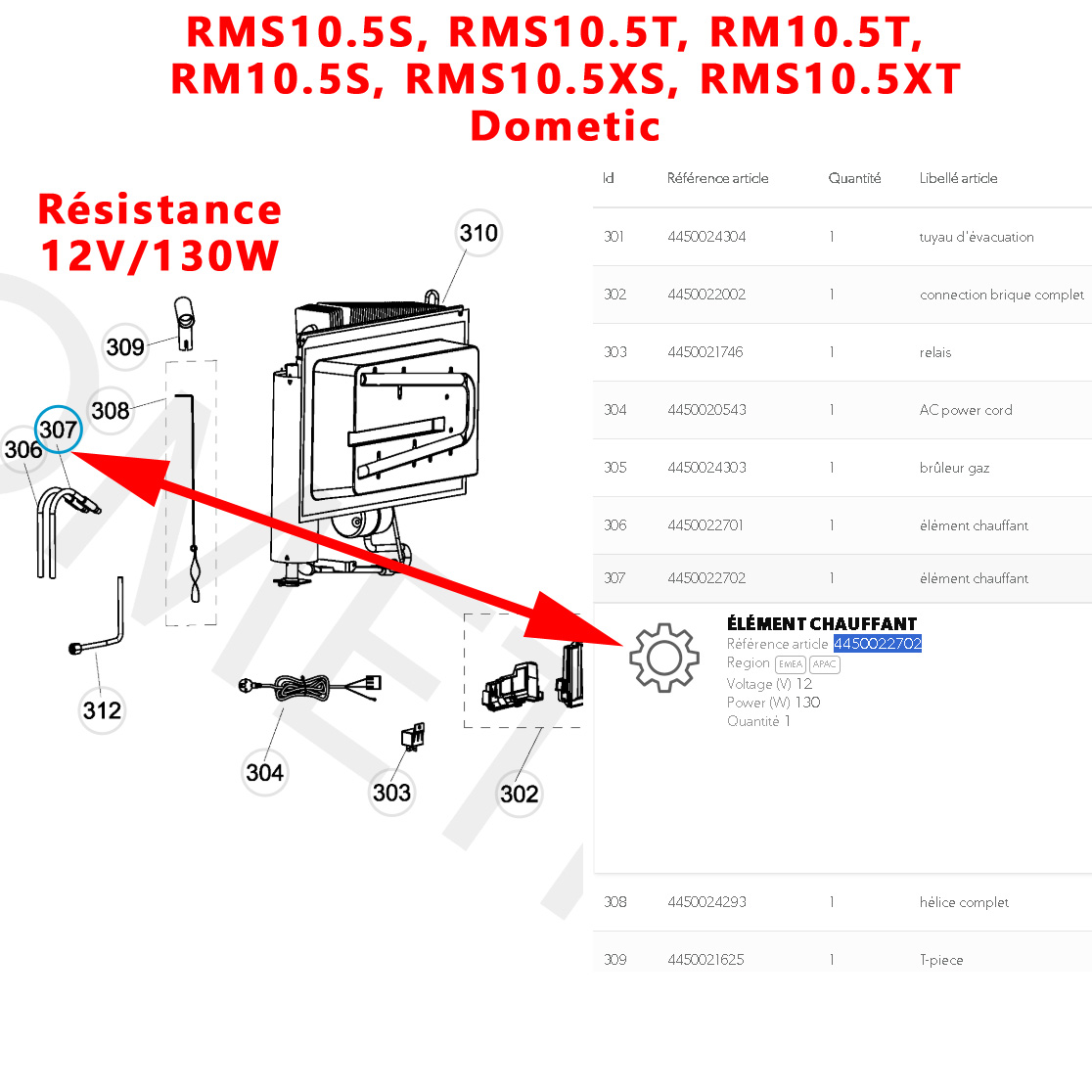 Pour vérifier si votre agregat comporte bien cette résistance 12V, merci de nous contacter tel 01.84.20.86.07 et munissez vous pour vérifier la compatibilité de votre numéro de produit de votre appareil Dometic (qui se trouve sur l’étiquette signalétique).