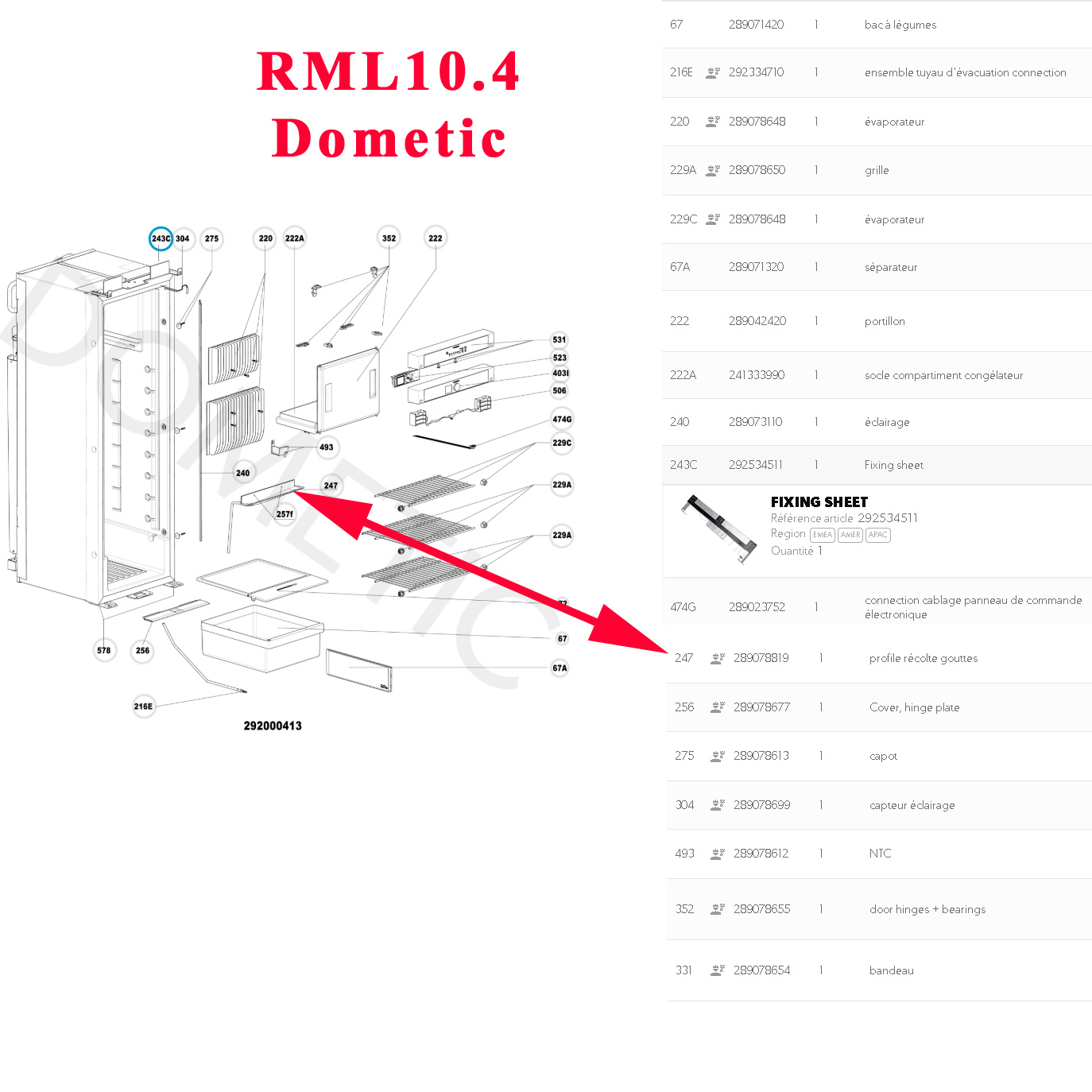 Pour vérifier si votre refrigerateur Dometic RML10.4 comporte bien cette piece, merci de nous contacter au 01.84.20.86.07 et munissez vous pour vérifier la compatibilité de votre numéro de produit de votre appareil Dometic (qui se trouve sur l’étiquette signalétique à l’interieur du réfrigerateur) ou contrôler sur la liste ci-dessous si votre numéro de série figure bien sur cette liste.