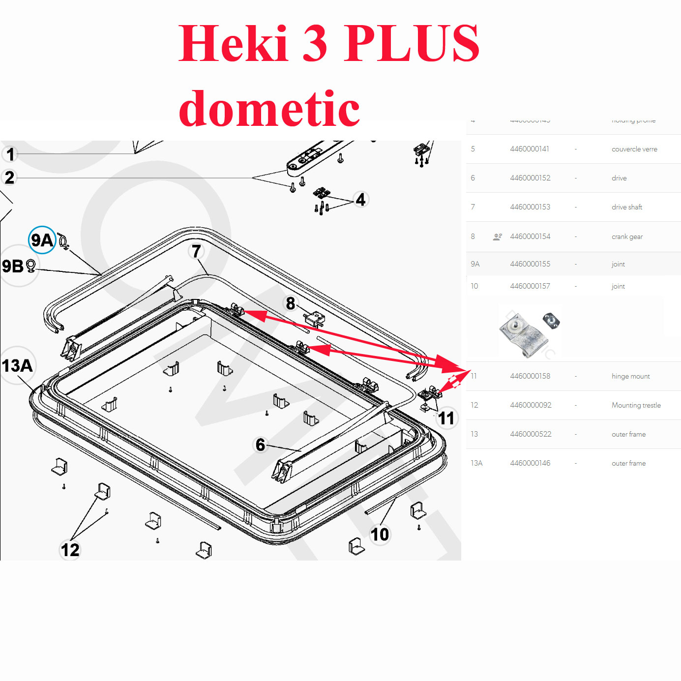 Dometic, un support de charnière des lanterneaux Heki3plus, Heki4plus