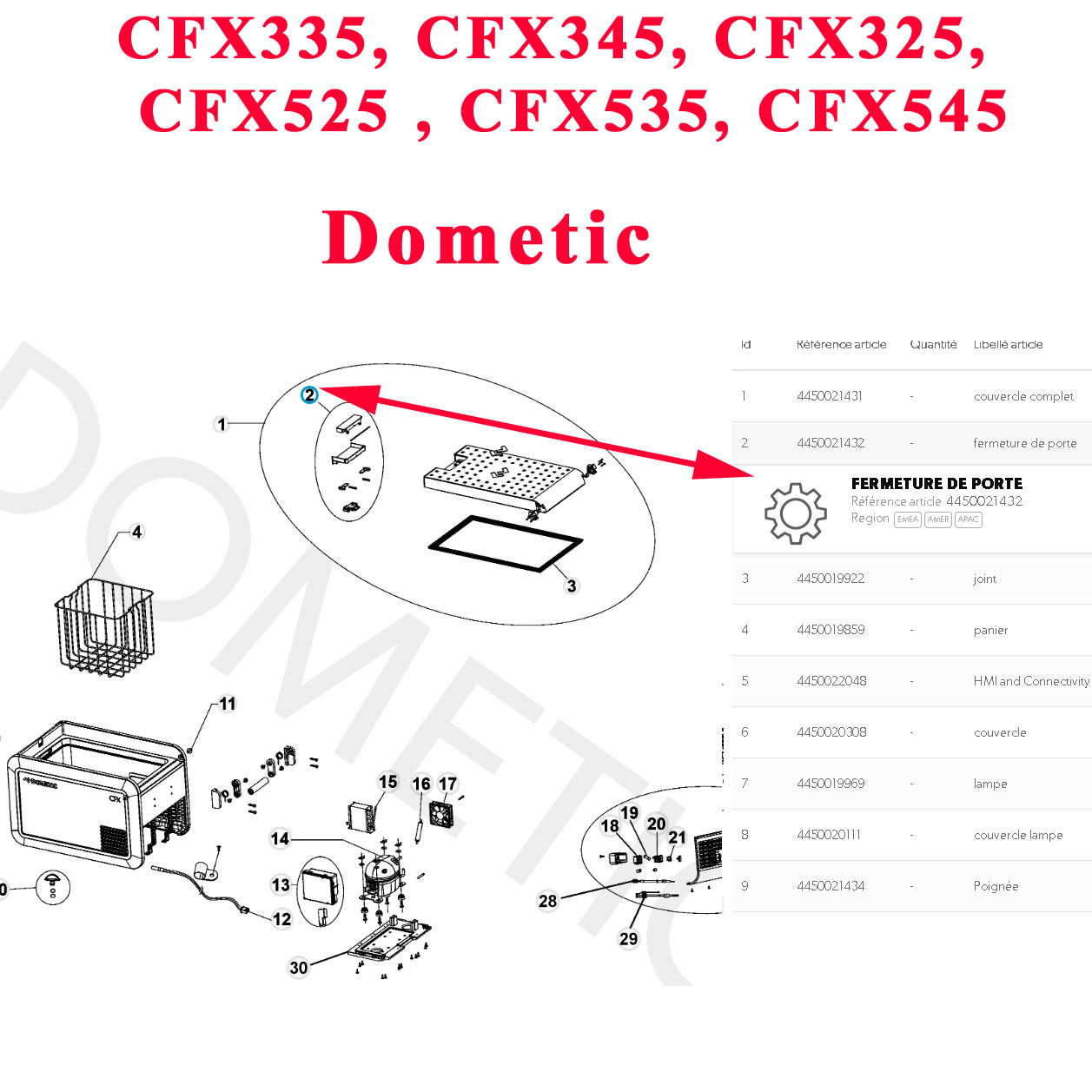 Dometic systeme de fermeture couvercle CFX335, CFX345, CFX325, CFX525, CFX535, CFX545