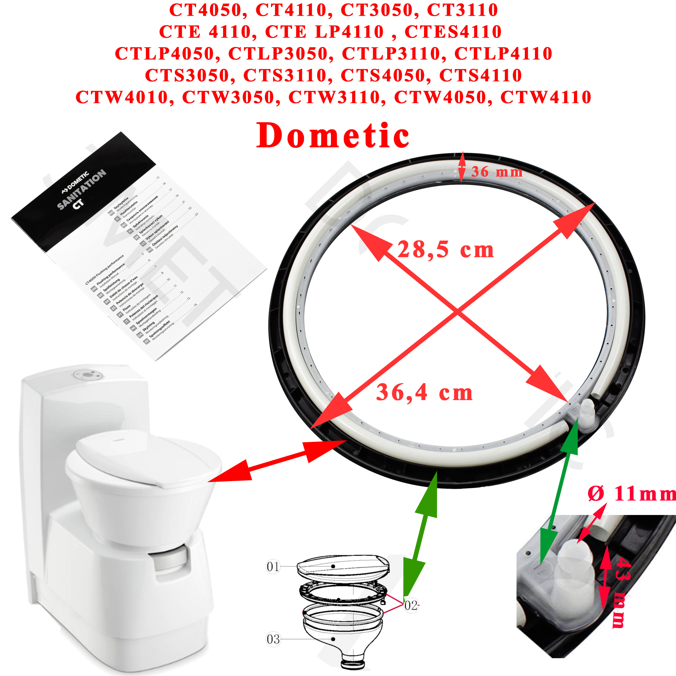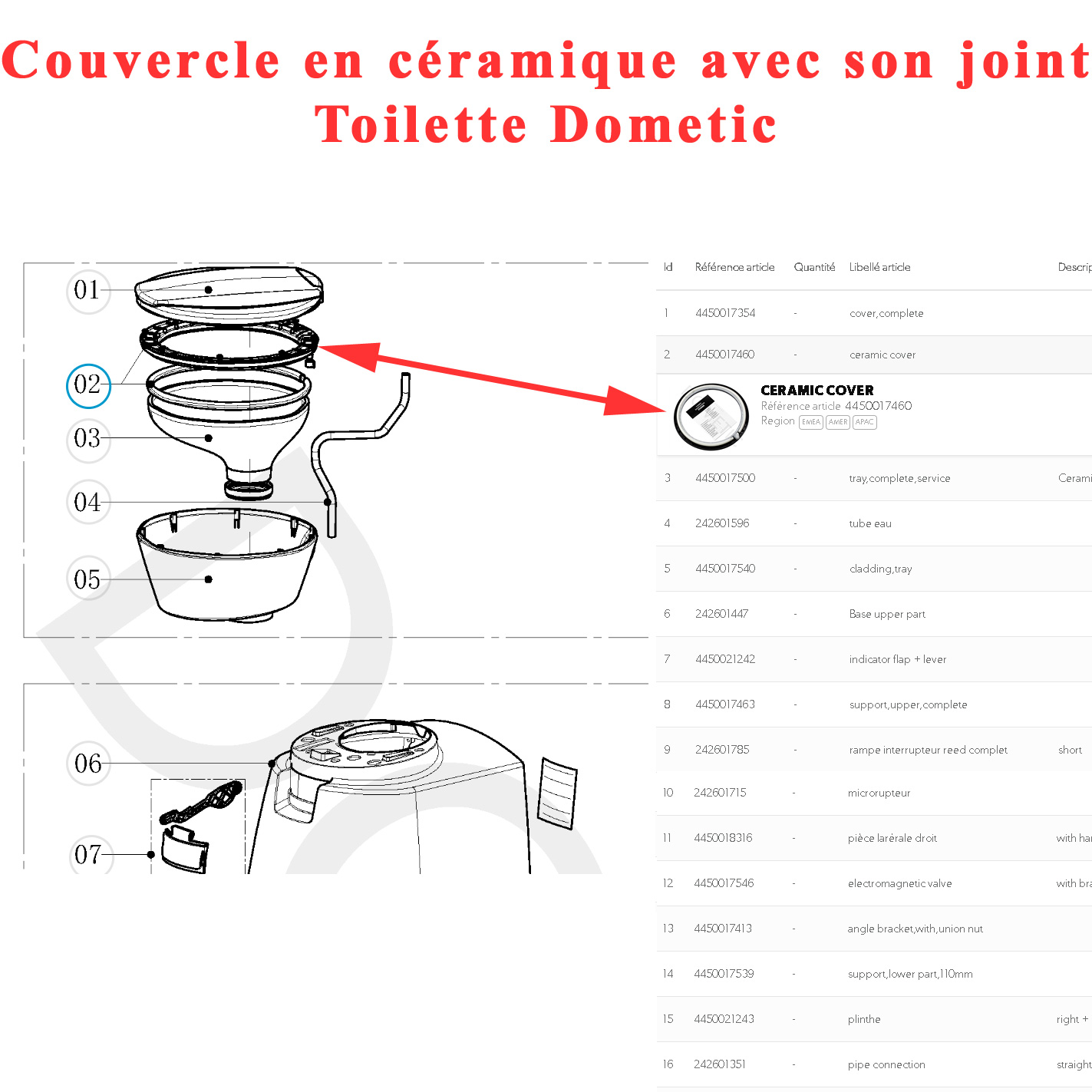 Couvercle toilette Dometic en céramique et son joint par Dometic