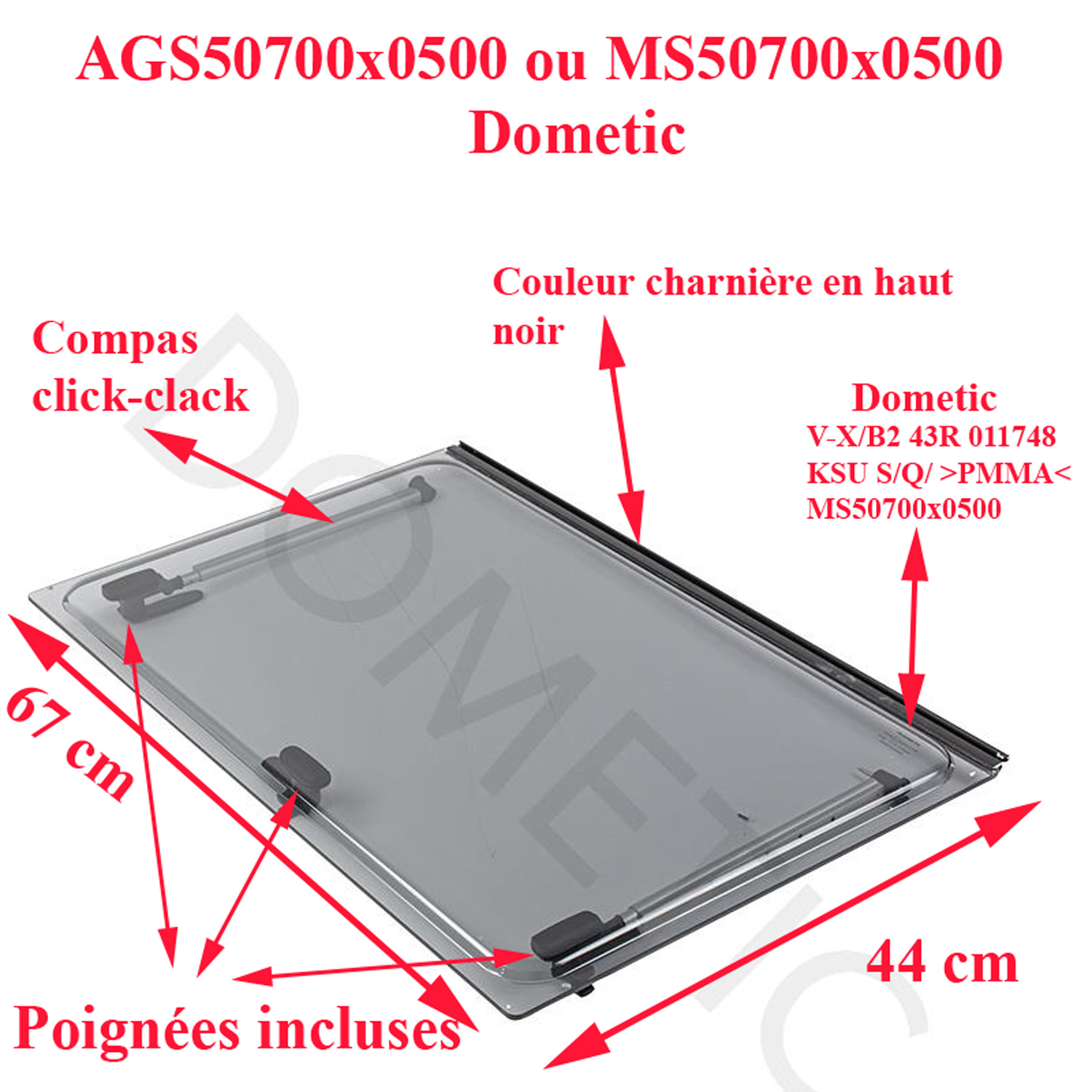 Dometic, vitre plexiglass, ou baie de remplacement de fenêtre de camping-car S5 projetable 500×700 mm AGS50700x0500 ou MS50700x0500