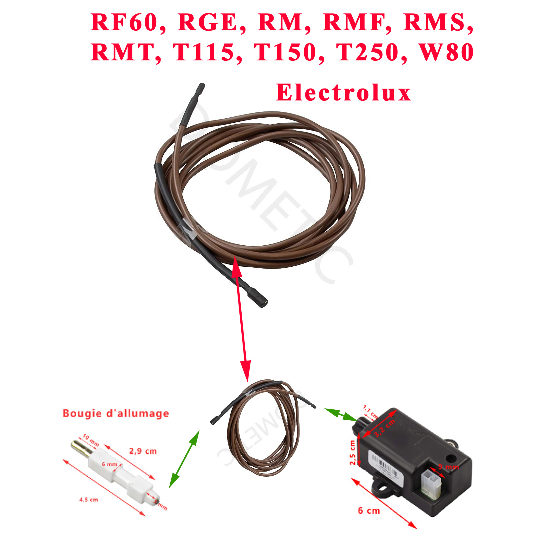 Electrolux , câble de la bougie d’allumage du bruleur des réfrigérateurs