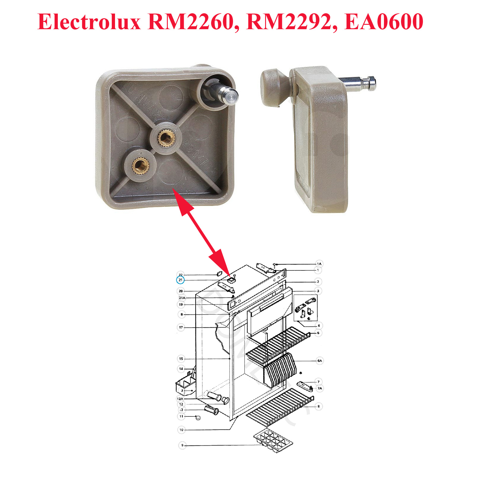 Electrolux, Serrure de porte LU AMA2 2904772 Réfrigérateur RM2266, RM2267, RM2268, RM2290, RM2291, RM2292, RM2260, RM2262, RM2200, EA0600