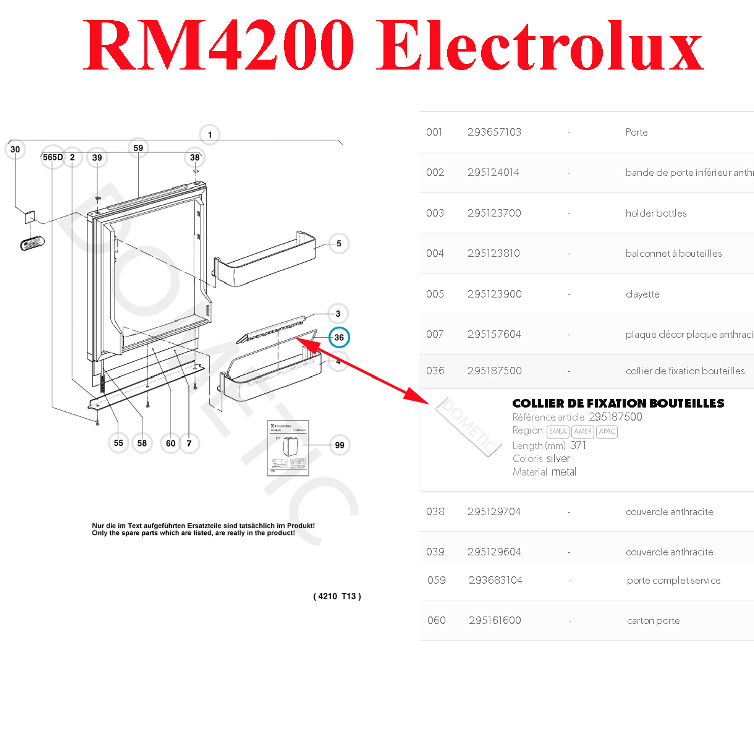 pièce origine constructeur, ref parts 295187500