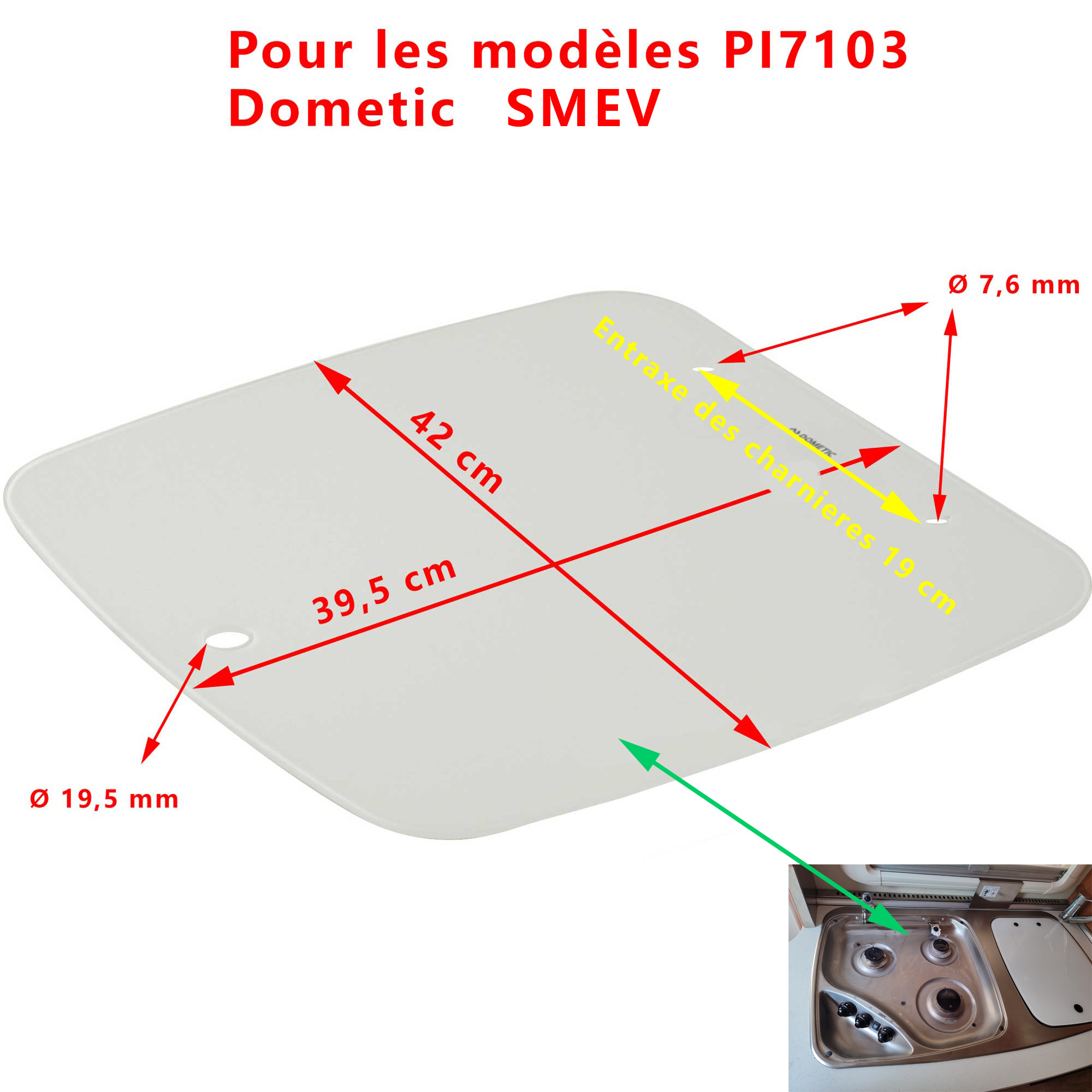 SMEV couvercle en verre pour table de cuisson PI7103, MO7103, MO7123 de Dometic