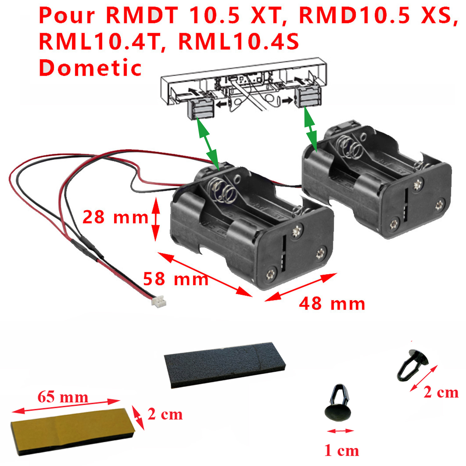Le Dometic R10-BP est la solution idéale pour assurer un refroidissement autonome de votre réfrigérateur série 10 en mode gaz, même si aucune source d’alimentation externe n’est disponible. Placez simplement des piles AA ordinaires (2 x 6) dans les deux supports et rangez-les dans les renfoncements prévus au niveau du réfrigérateur.