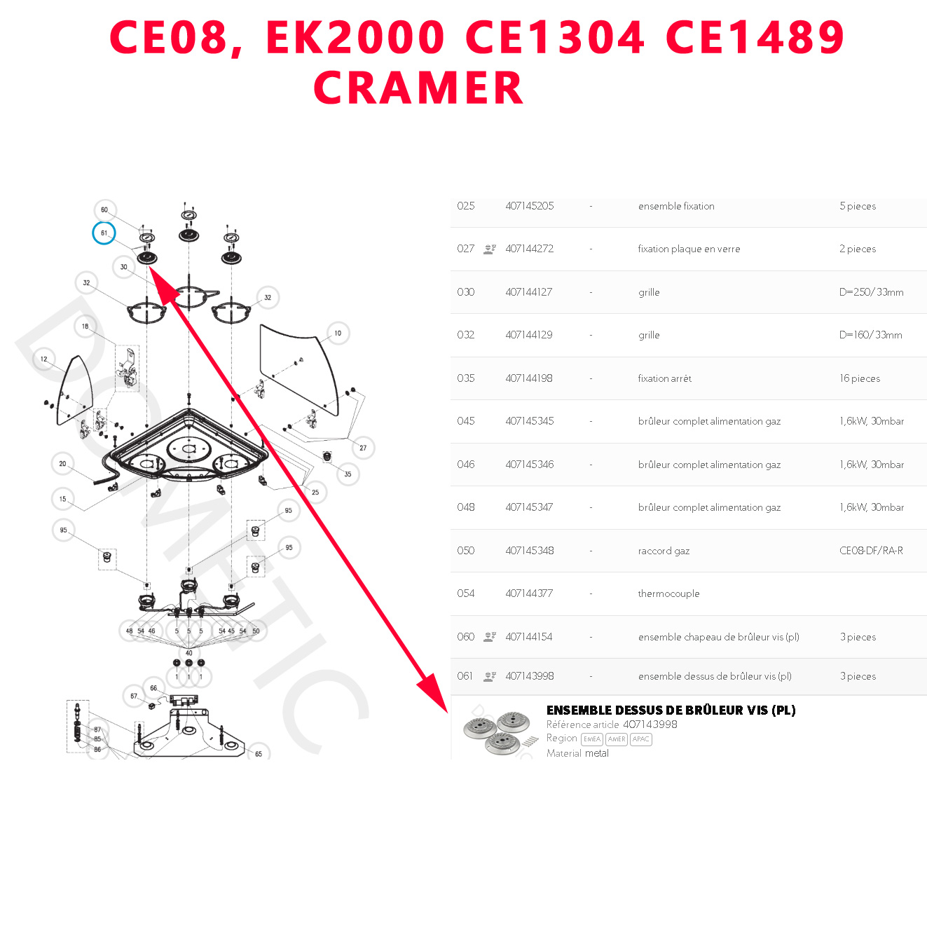 Un brûleur pour les modèles : CE04, CE06, CE07, CE08, CE09, CE99, COE, PICE04, PISK2000, EK2000, K840x436, CE1304, CE1489 Dometic Cramer