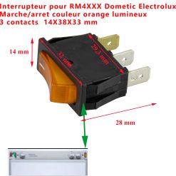 Interrupteur du piezo qui permet d’enflammer le gaz du brûleur. Maintenant, ce bouton est de couleur rouge (et plus orange) pour les réfrigérateurs de la série 4 par Dometic.