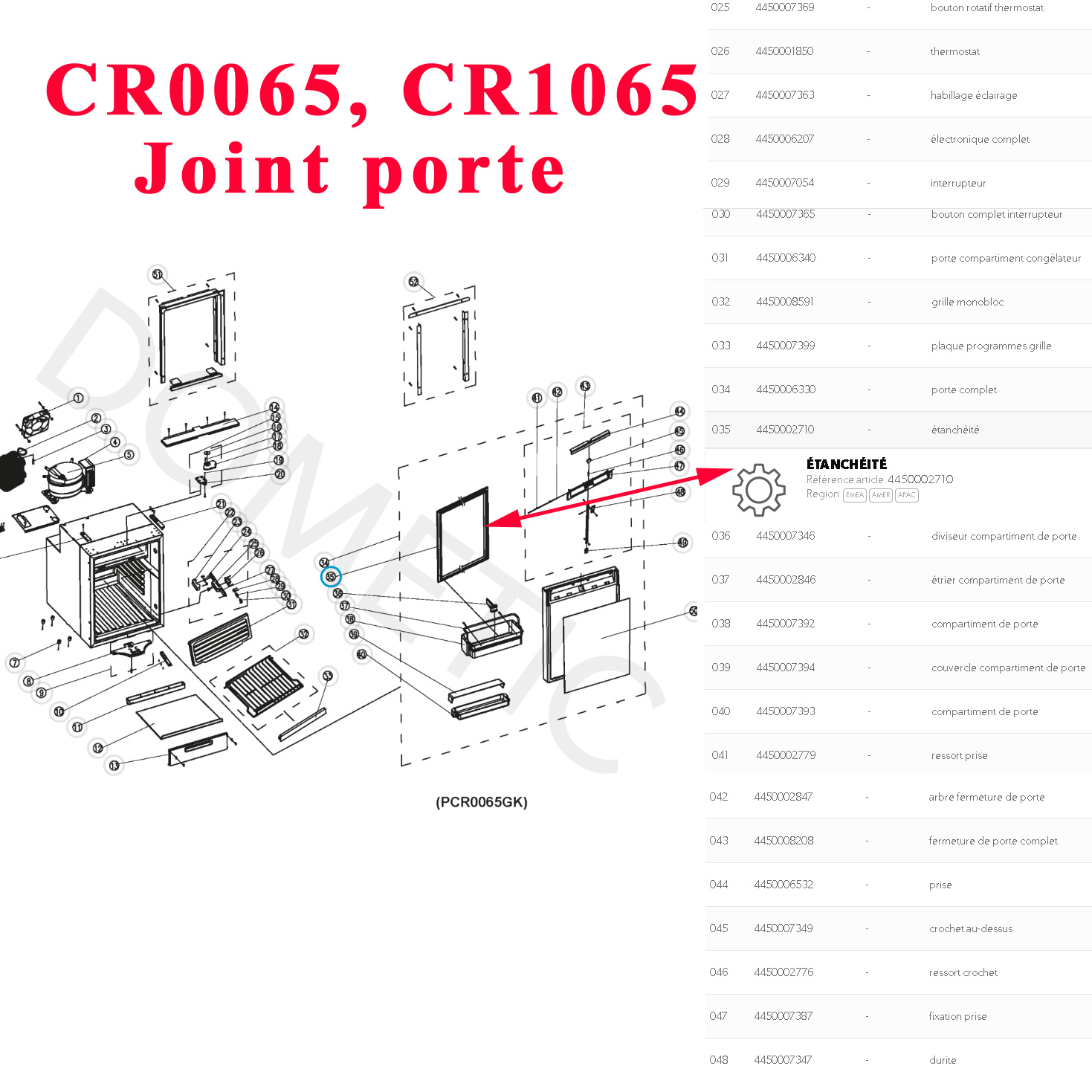 Joint de porte pour réfrigérateur CR0065 par Dometic