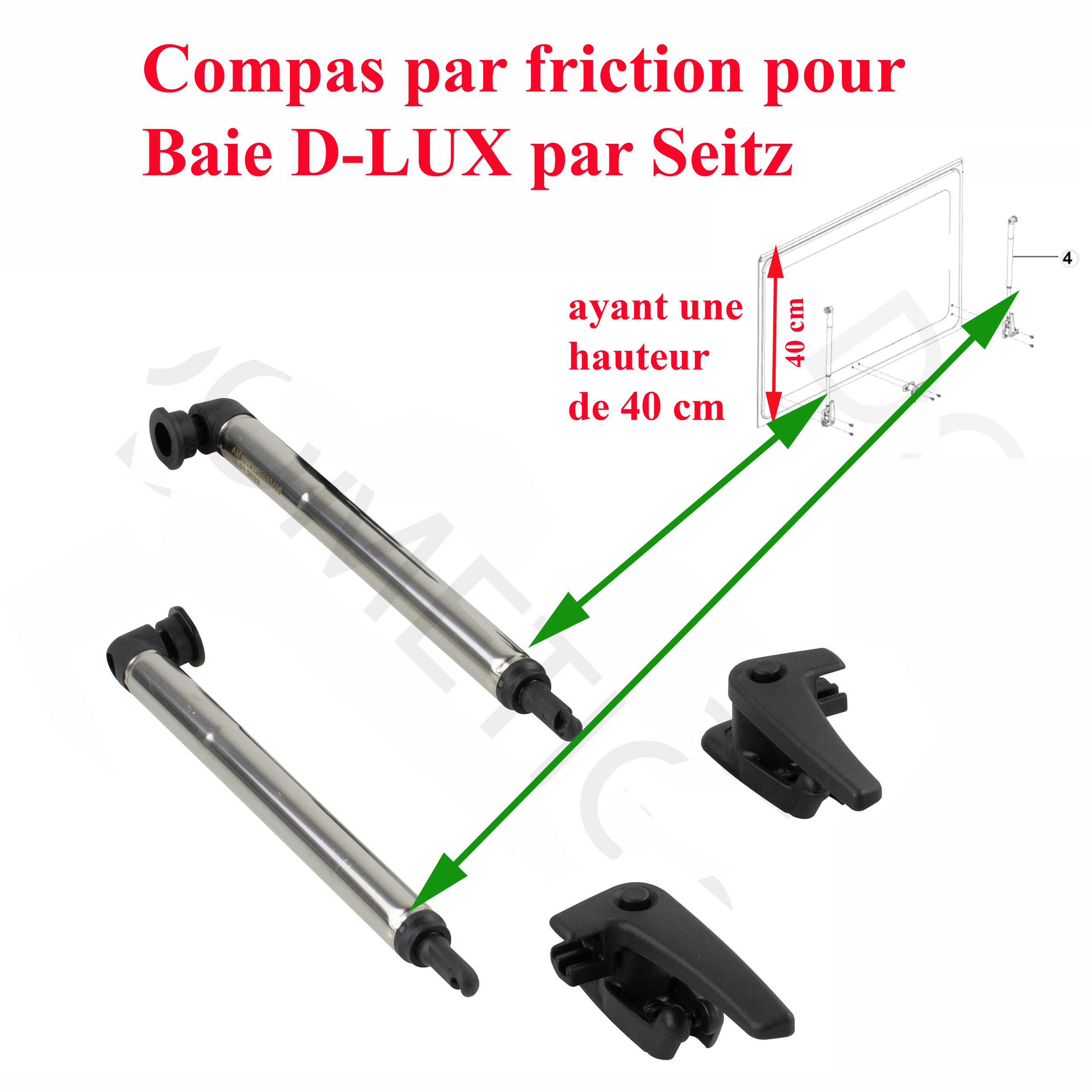 Paire de compas par friction, ou vérins avec poignée pour les baies D-Lux ayant une hauteur de 40 cm par Dometic, Seitz