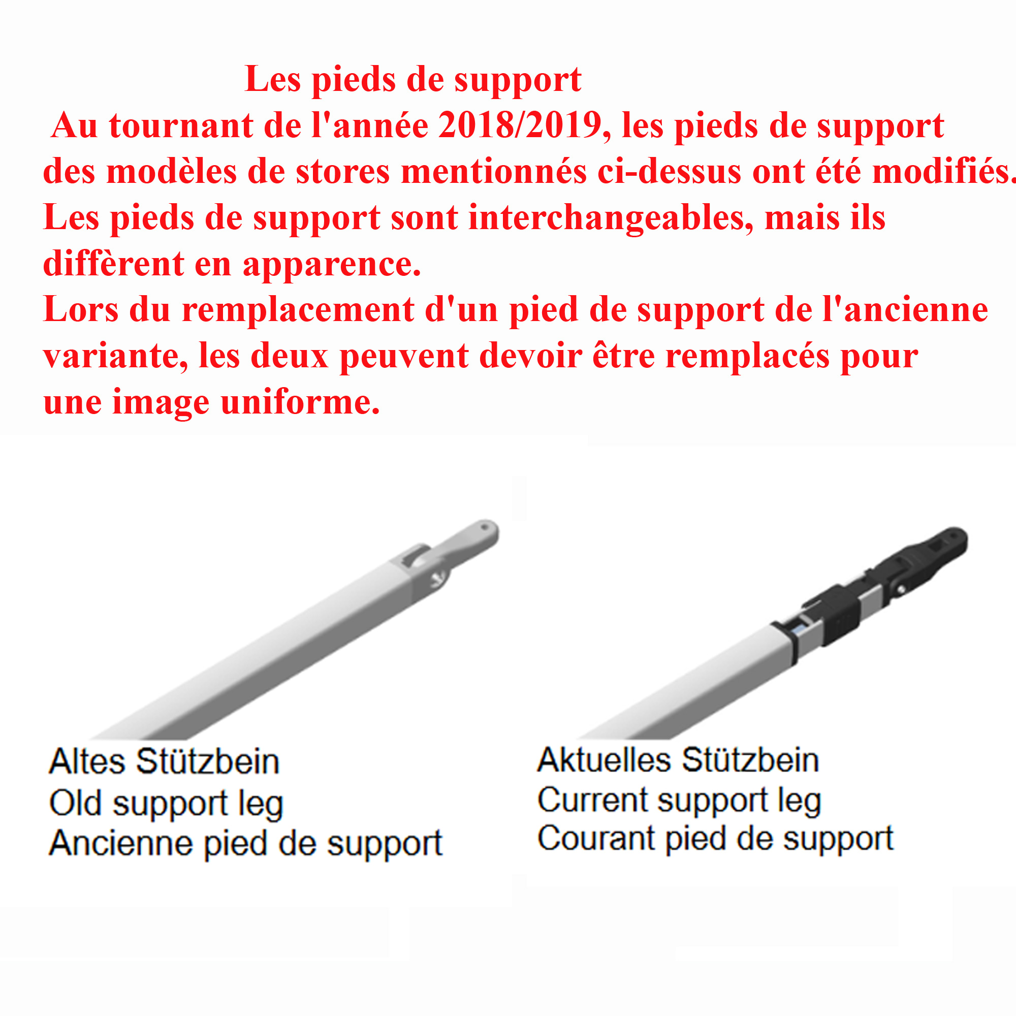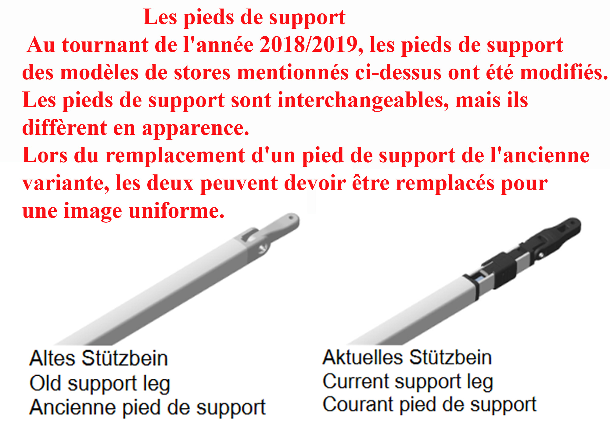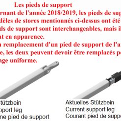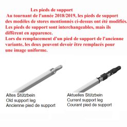 Au tournant de l’année 2018/2019, les pieds de support des modèles de stores mentionnés ci-dessus ont été modifiés.