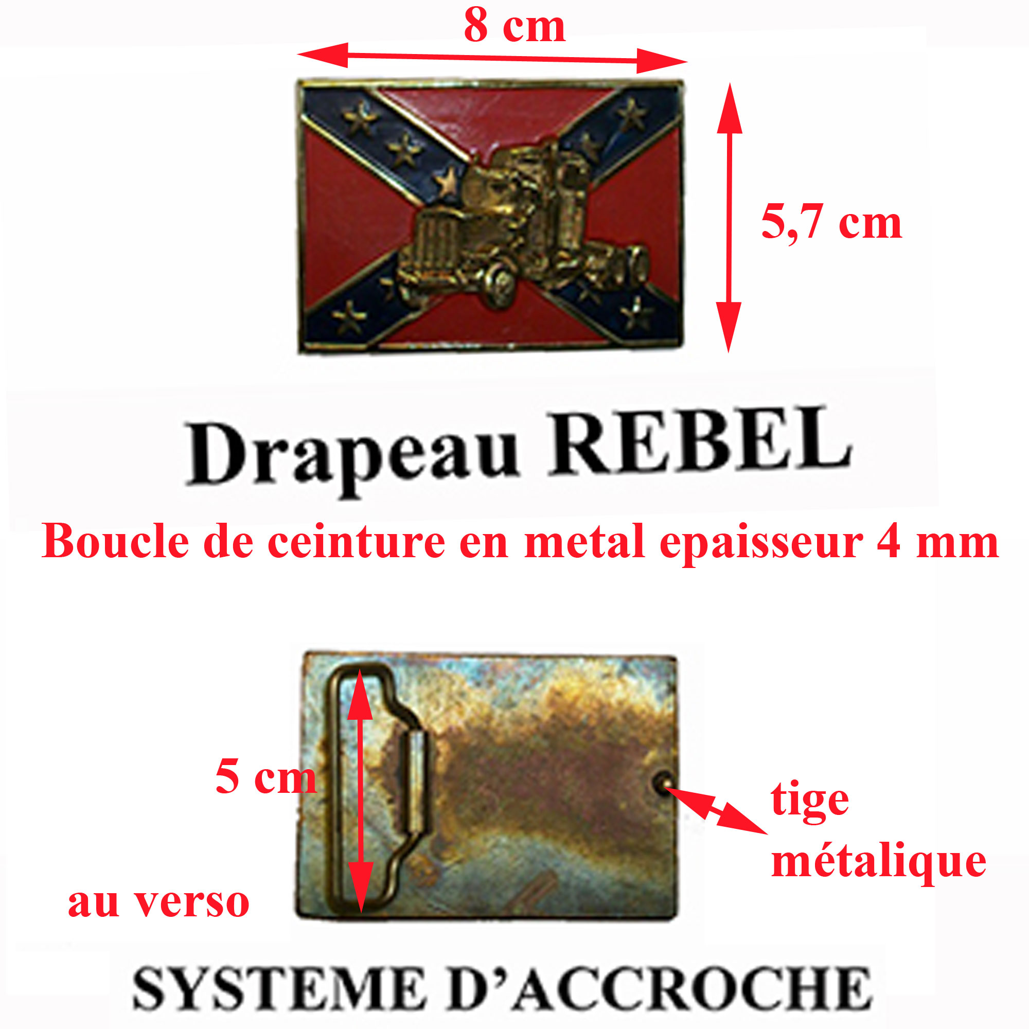 Plaque boucle de ceinture en métal : drapeau Rebel.