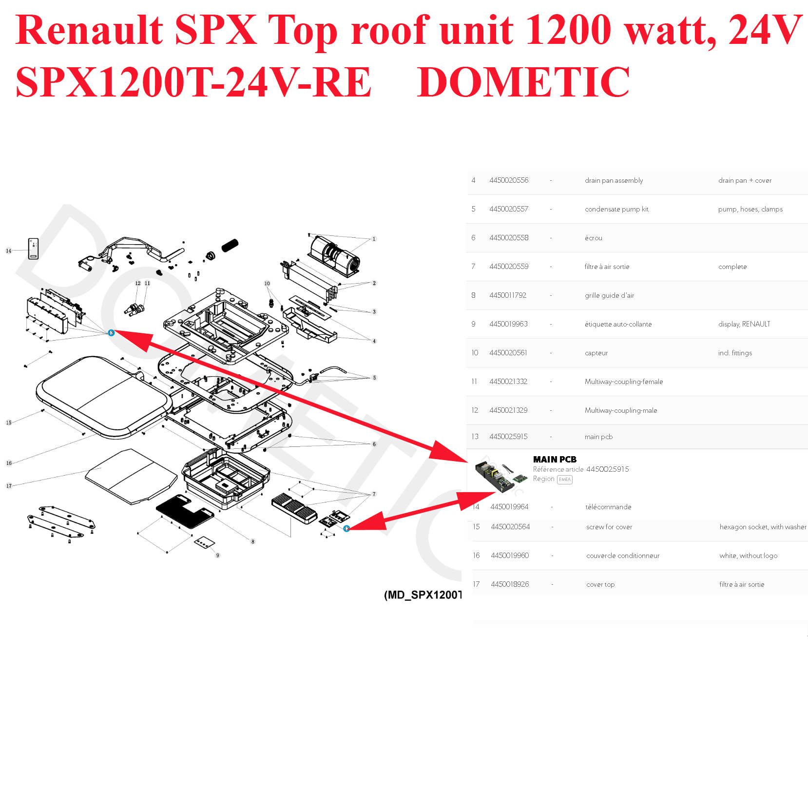 Pour vérifier si votre climatisation SPX1200 comporte bien ces deux platines, merci de nous contacter au 01.84.20.86.07 et munissez vous pour vérifier la compatibilité de votre numéro de produit de votre appareil Dometic (qui se trouve sur l’étiquette signalétique ).