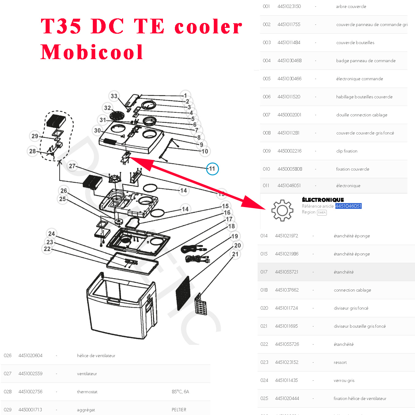 Attention : il existe la même platine quasi identique pour d’autre glaciere vérifier avec le numero de produit qui se trouve sur une etiquette sous la glaciere pour ne pas se trompé , l’autre platine est la reference EW320
