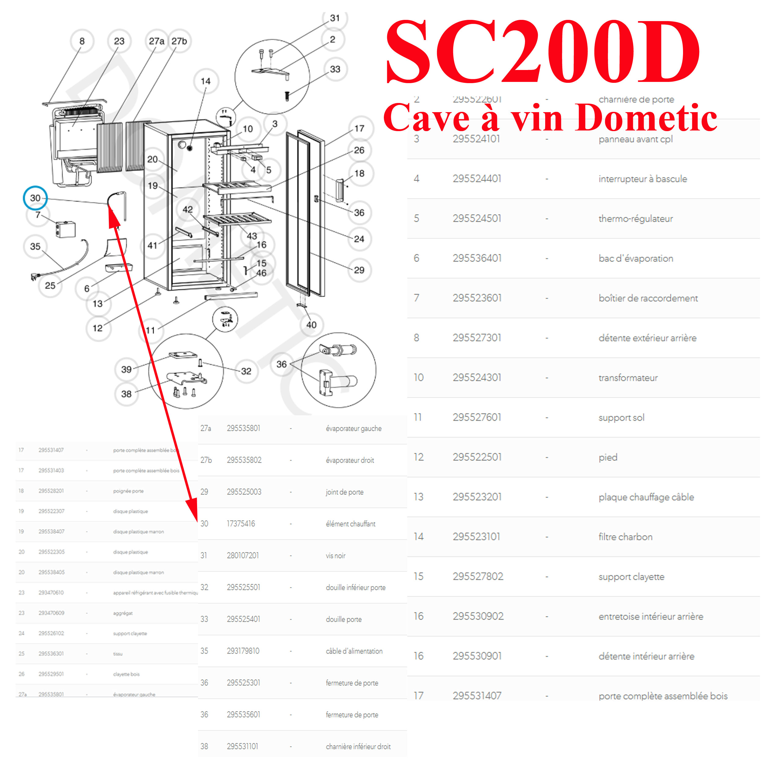 Résistance pour cave à vin Dometic